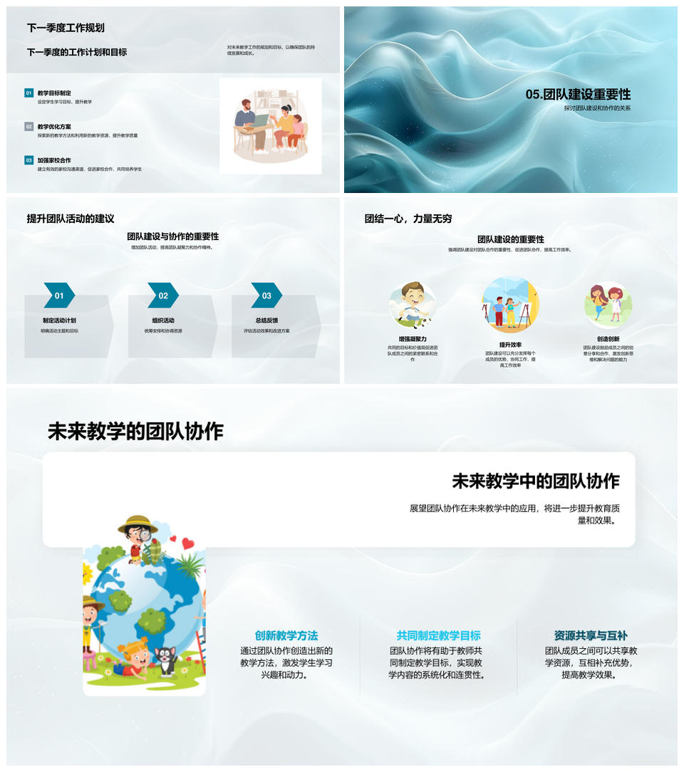 这是一张教师团队季度成果总结与协作提升PPT模板,包含教师团队、季度成果、总结、协作提升等主题内容,也可用作教师团队季度成果总结、教师团队季度成果协作提升、团队季度成果总结协作、季度成果总结协作提升、教师团队协作提升成果、团队协作提升成果总结、教师成果总结协作提升、教师团队季度协作提升、季度成果协作提升总结、教师团队季度总结协作、团队季度总结协作提升、教师成果协作提升团队、季度协作提升成果总结、团队协作提升季度成果、教师团队成果协作提升等PPT场景使用。