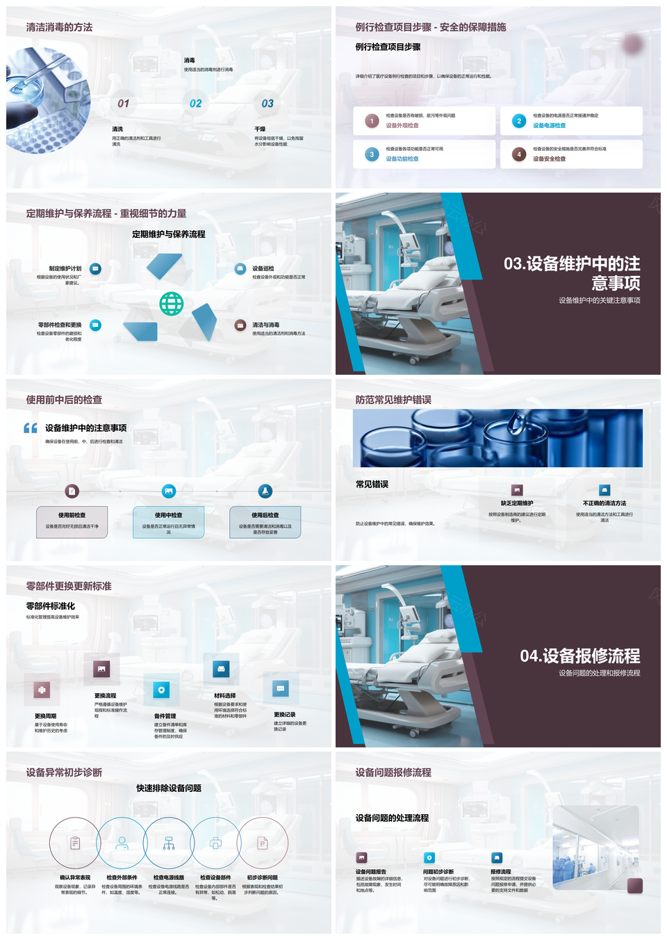 这是一张医疗设备维护清洁检查及部件更换策略PPT模板,包含医疗设备、维护、清洁、检查、部件、更换、策略等主题内容,也可用作医疗设备维护清洁检查、医疗设备维护清洁、维护清洁检查部件更换、清洁检查部件更换策略、医疗设备维护检查部件、维护检查部件更换策略、医疗设备清洁检查部件、清洁部件更换策略检查、维护清洁部件更换策略、医疗设备检查部件更换、检查部件更换策略维护、医疗设备部件更换策略、维护清洁检查策略、医疗设备维护部件更换、清洁检查部件更换等PPT场景使用。