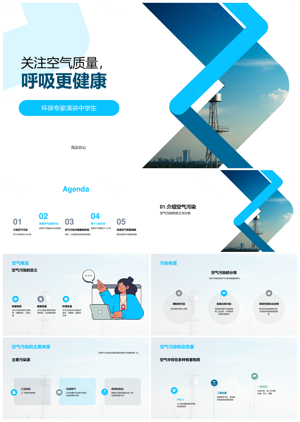 环保专家携中学生监测空气污染危害健康PPT模板推荐