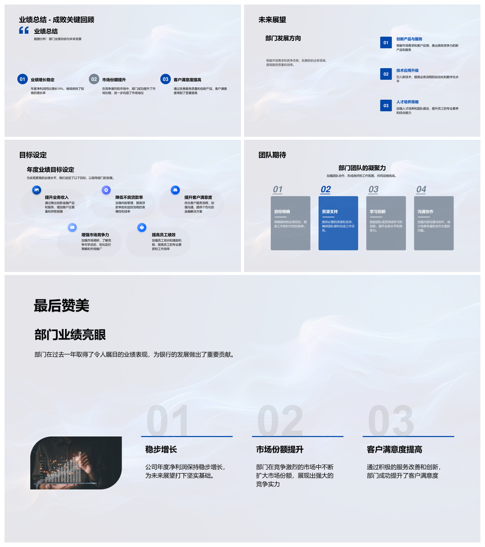 这是一张2025银行业务年终经营成效与未来策略解析PPT模板,包含2025、银行、业务、年终、经营、成效、未来、策略、解析等主题内容,也可用作2025银行业务年终经营成效、2025银行业务经营成效、银行业务年终经营成效、年终经营成效未来策略、经营成效未来策略解析、2025银行业务未来策略、银行业务未来策略解析、2025银行业务、银行业务年终、银行业务经营成效、年终经营成效、经营成效未来策略、未来策略解析、银行业务未来策略、银行业务解析等PPT场景使用。 风云办公提供的2025银行业务年终经营成效与未来策略解析PPT模板,下载格式为pptx,一共33页,作品中文字及图均可以修改和编辑,图片更改请在作品中右键图片并更换,文字修改请直接点击文字进行修改。