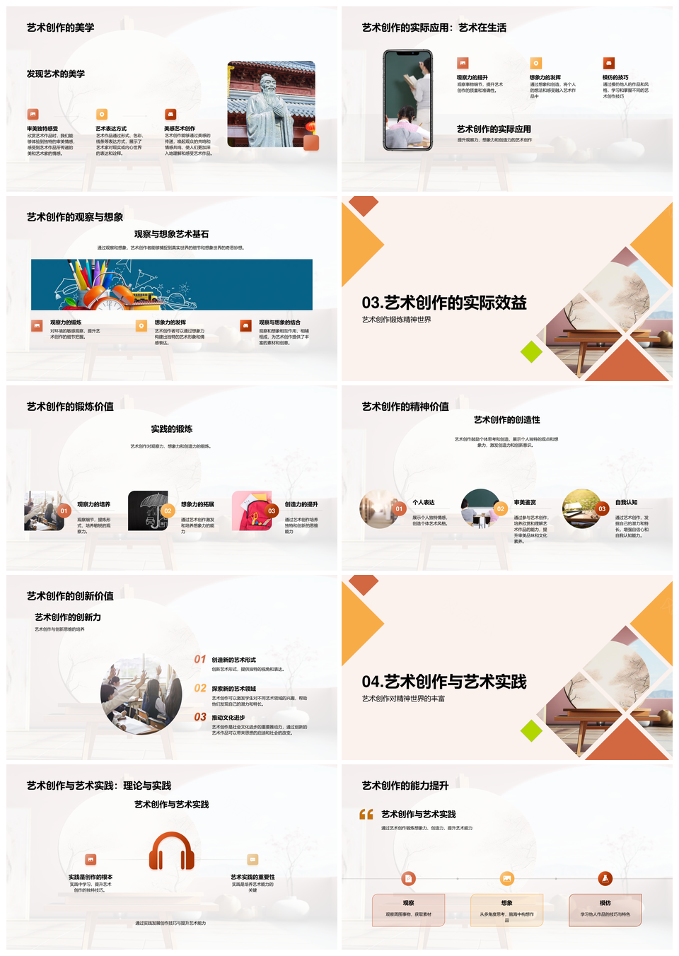 风云办公提供的艺术创作方法观察想象与画笔探析PPT模板,下载格式为pptx,一共23页,作品中文字及图均可以修改和编辑,图片更改请在作品中右键图片并更换,文字修改请直接点击文字进行修改。