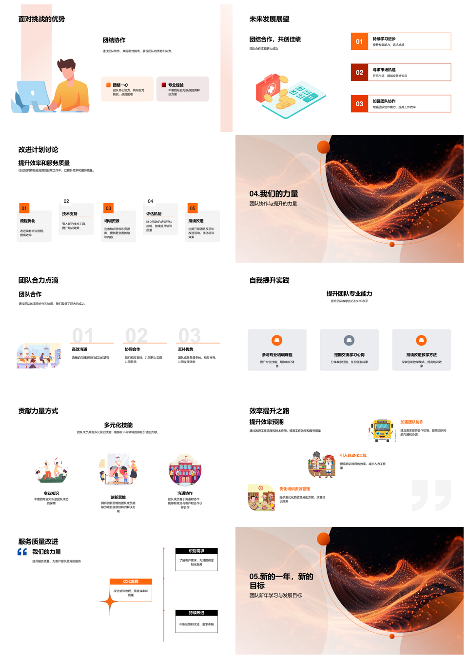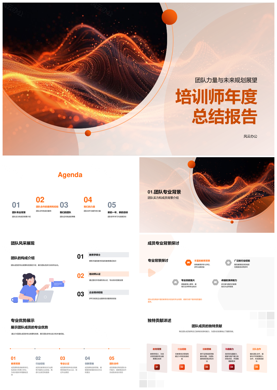 这是一张培训师年度总结团队力量专业优势未来规划PPT模板,包含培训师、年度总结、团队力量、专业优势、未来规划等主题内容,也可用作培训师年度总结团队力量专业优势、培训师年度总结团队力量未来规划、培训师年度总结专业优势未来规划、年度总结团队力量专业优势未来规划、培训师年度总结团队力量、培训师年度总结专业优势、培训师年度总结未来规划、年度总结团队力量专业优势、年度总结团队力量未来规划、年度总结专业优势未来规划、团队力量专业优势未来规划、培训师专业优势未来规划、培训师团队力量、培训师专业优势、团队力量未来规划等PPT场景使用。 风云办公提供的培训师年度总结团队力量专业优势未来规划PPT模板,下载格式为pptx,一共33页,作品中文字及图均可以修改和编辑,图片更改请在作品中右键图片并更换,文字修改请直接点击文字进行修改。