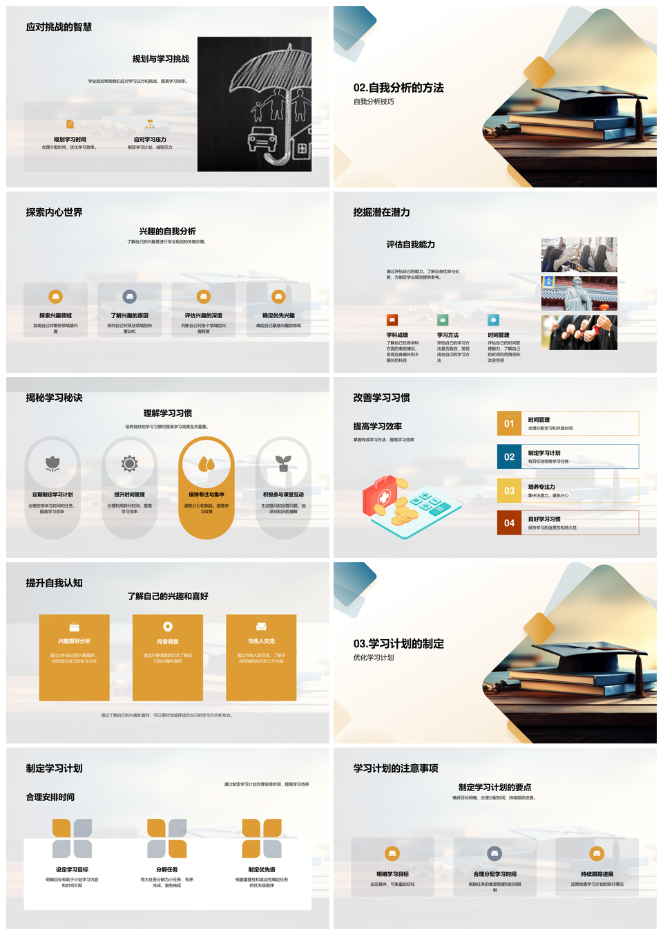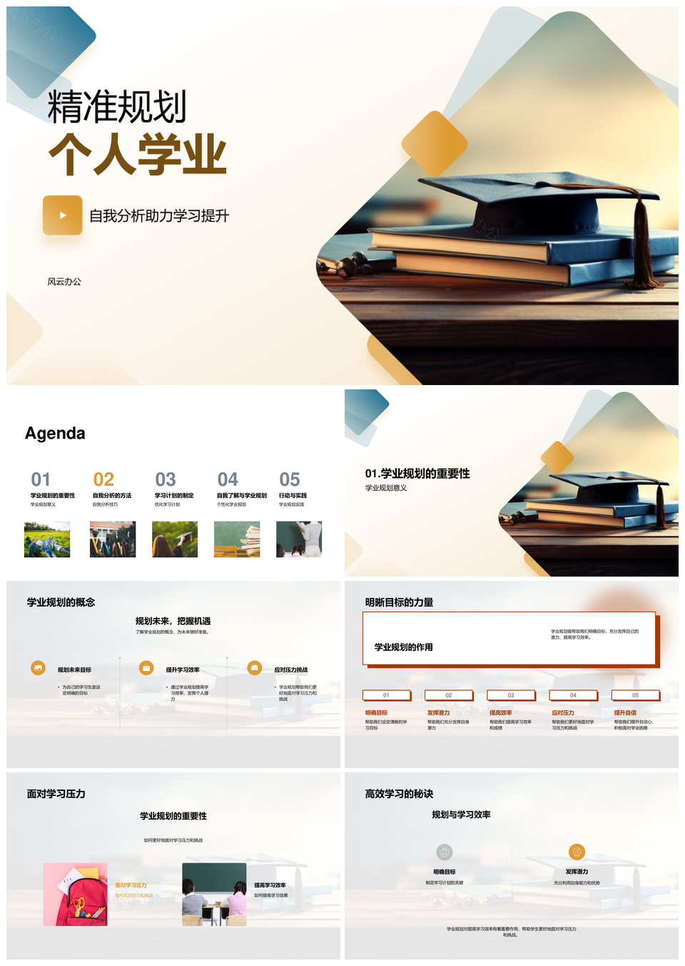 这是一张精准学业规划自我分析高效应对压力挑战PPT模板,包含精准、学业规划、自我分析、高效、应对、压力、挑战等主题内容,也可用作精准学业规划自我分析、学业规划自我分析高效、规划自我分析高效应对、自我分析高效应对压力、高效应对压力挑战、精准学业规划高效应对、学业规划高效应对压力、规划高效应对压力挑战、精准学业规划、学业规划自我分析、规划自我分析高效、自我分析高效应对、高效应对压力、应对压力挑战、高效应对挑战等PPT场景使用。 风云办公提供的精准学业规划自我分析高效应对压力挑战PPT模板,下载格式为pptx,一共33页,作品中文字及图均可以修改和编辑,图片更改请在作品中右键图片并更换,文字修改请直接点击文字进行修改。
