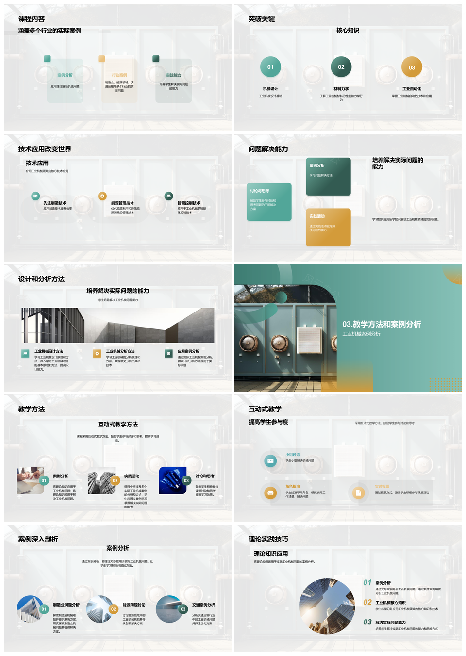这是一张工业机械硕士课程教授研究教学经验核心知识PPT模板,包含工业机械、硕士课程、教授、研究、教学、经验、核心知识等主题内容,也可用作工业机械硕士课程教授研究、硕士课程教授研究教学、教授研究教学经验核心、研究教学经验核心知识、工业机械硕士课程教授、硕士课程教授研究教学、教授研究教学经验核心、研究教学经验核心知识、工业机械教授研究教学、硕士课程教学经验核心、工业机械硕士课程教学、工业机械研究教学经验、教授教学经验核心知识、硕士课程经验核心知识、工业机械教授研究经验等PPT场景使用。 风云办公提供的工业机械硕士课程教授研究教学经验核心知识PPT模板,下载格式为pptx,一共38页,作品中文字及图均可以修改和编辑,图片更改请在作品中右键图片并更换,文字修改请直接点击文字进行修改。