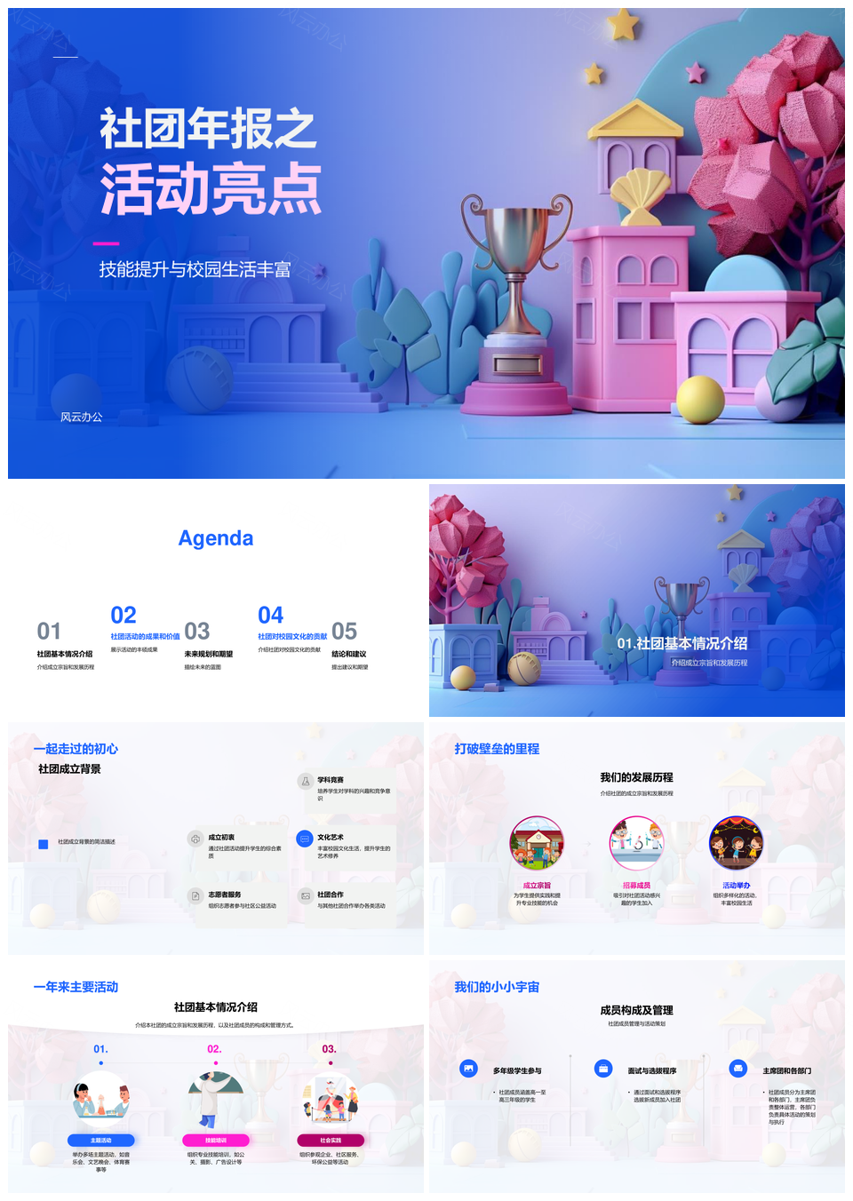 风云办公提供的社团年报技能协作创新活动校园文化PPT模板,下载格式为pptx,一共28页,作品中文字及图均可以修改和编辑,图片更改请在作品中右键图片并更换,文字修改请直接点击文字进行修改。