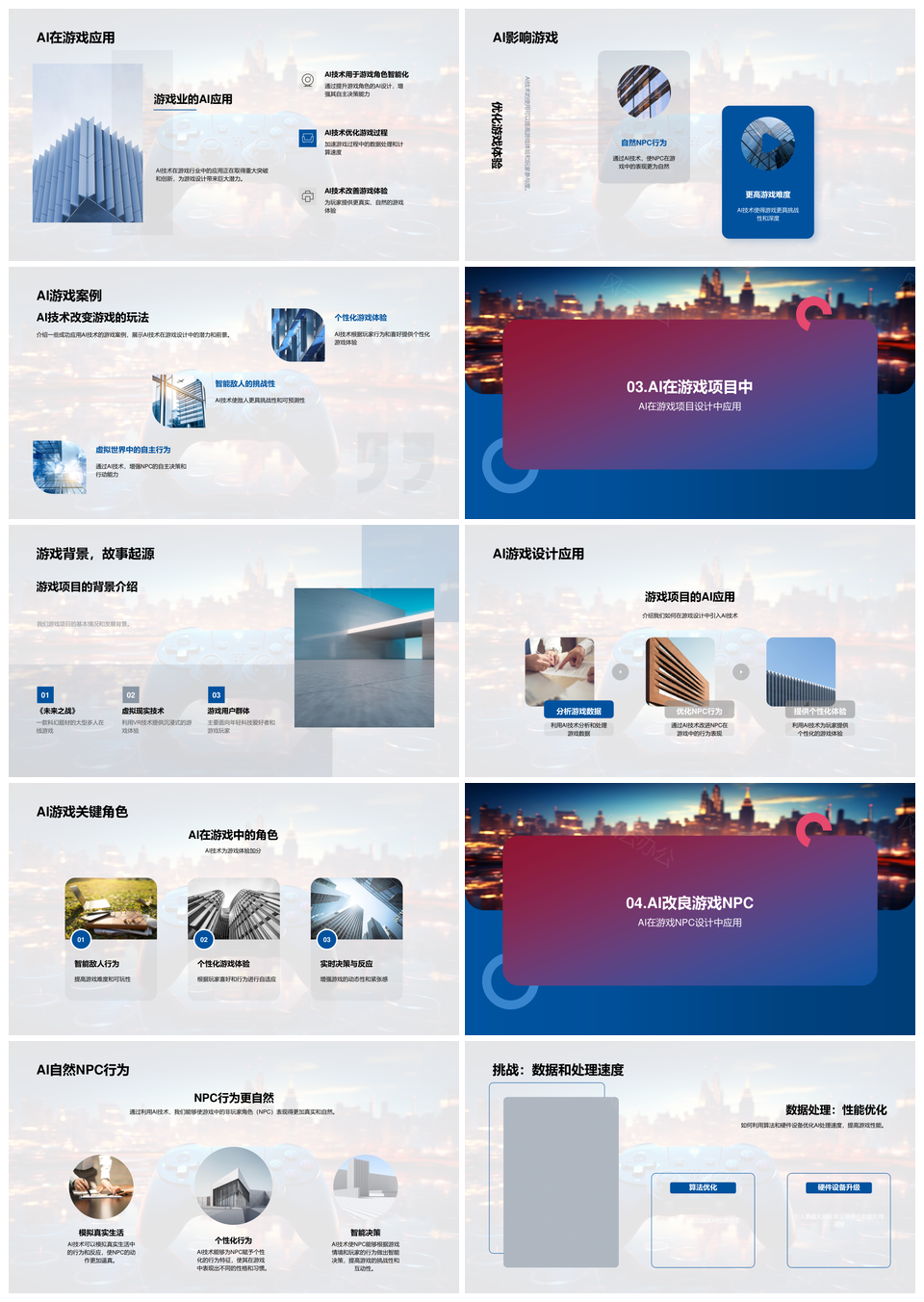 这是一张AI技术赋能游戏开发者优化设计与芯片PPT模板,包含AI技术、赋能、游戏开发者、优化设计、芯片等主题内容,也可用作AI技术赋能游戏开发者优化设计、AI技术赋能游戏开发者芯片、AI技术赋能优化设计芯片、游戏开发者优化设计芯片、AI技术游戏开发者优化设计、赋能游戏开发者优化设计芯片、AI技术赋能优化设计、游戏开发者优化设计、AI技术游戏开发者芯片、赋能优化设计芯片、AI技术赋能芯片、游戏开发者芯片优化、优化设计芯片、AI技术赋能、游戏开发者优化等PPT场景使用。 风云办公提供的AI技术赋能游戏开发者优化设计与芯片PPT模板,下载格式为pptx,一共23页,作品中文字及图均可以修改和编辑,图片更改请在作品中右键图片并更换,文字修改请直接点击文字进行修改。
