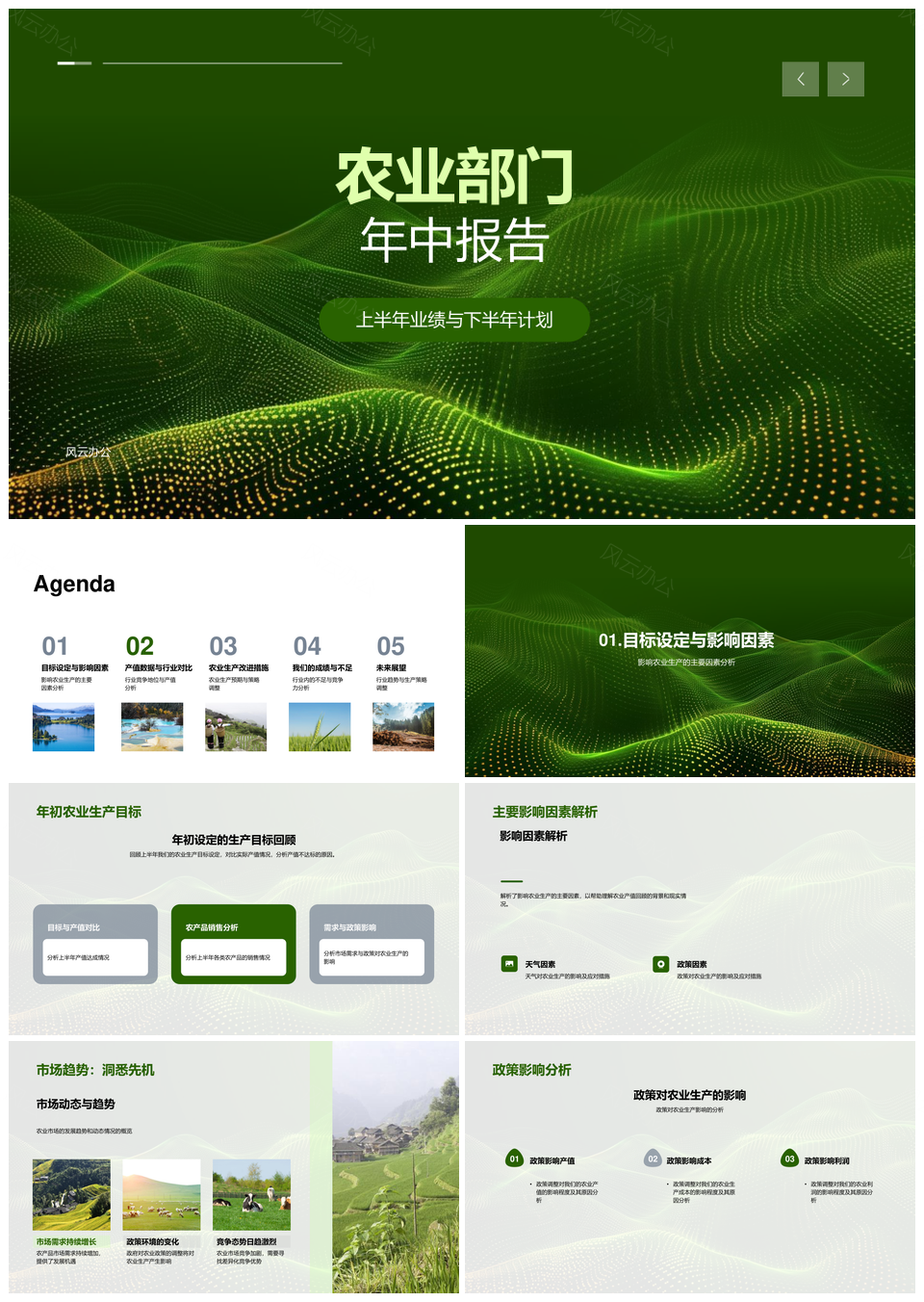 这是一张农业部门年中目标市场政策天气产值行业措施报告PPT模板,包含农业部门、年中目标、市场、政策、天气、产值、行业、措施、报告等主题内容,也可用作农业部门年中目标市场、年中目标市场政策、目标市场政策天气、市场政策天气产值、政策天气产值行业、天气产值行业措施、产值行业措施报告、农业部门年中目标、年中目标市场、目标市场政策、市场政策天气、政策天气产值、天气产值行业、产值行业措施、行业措施报告等PPT场景使用。 风云办公提供的农业部门年中目标市场政策天气产值行业措施报告PPT模板,下载格式为pptx,一共33页,作品中文字及图均可以修改和编辑,图片更改请在作品中右键图片并更换,文字修改请直接点击文字进行修改。
