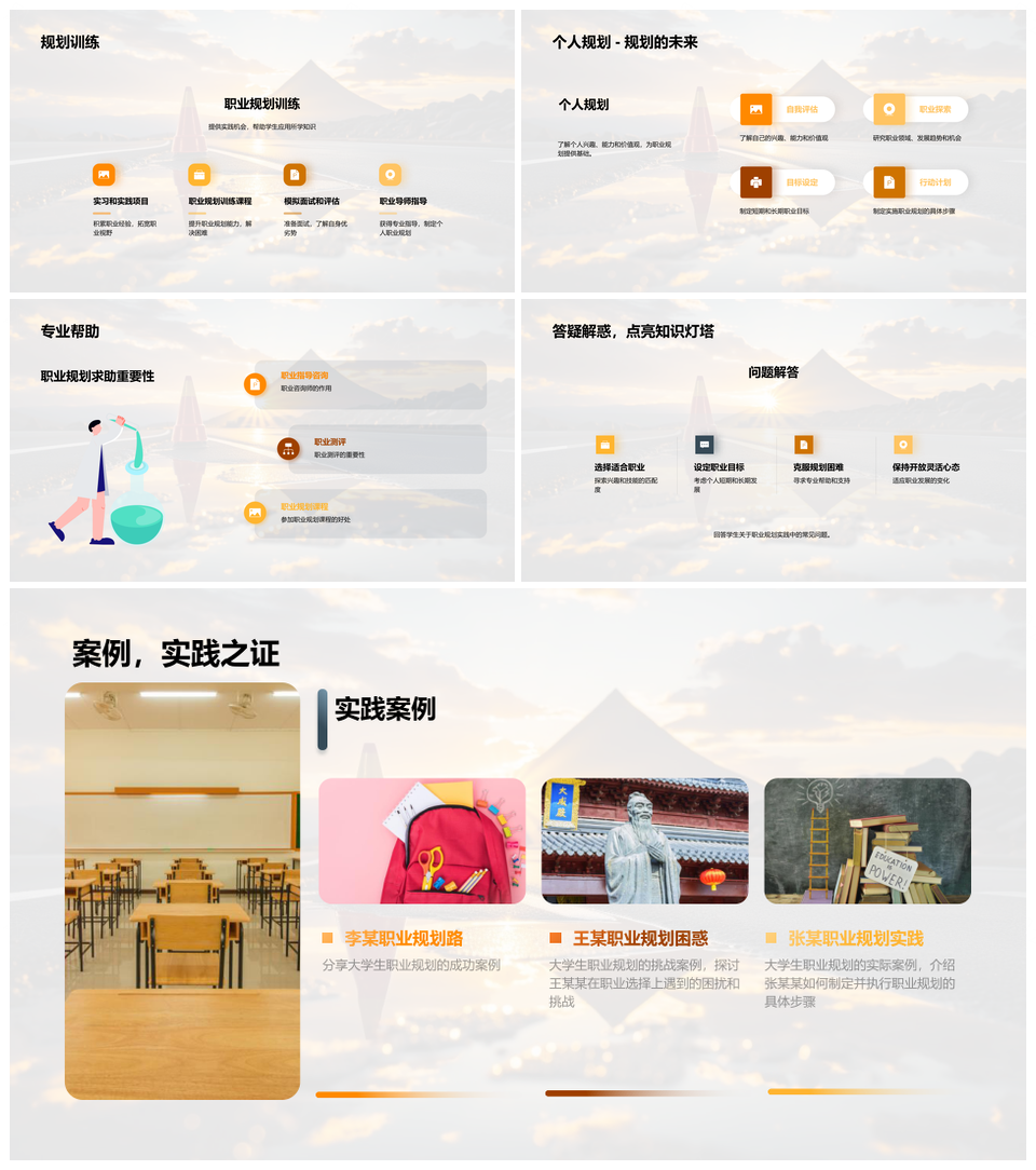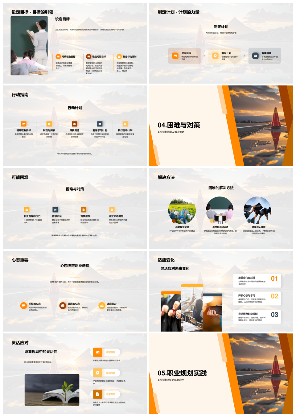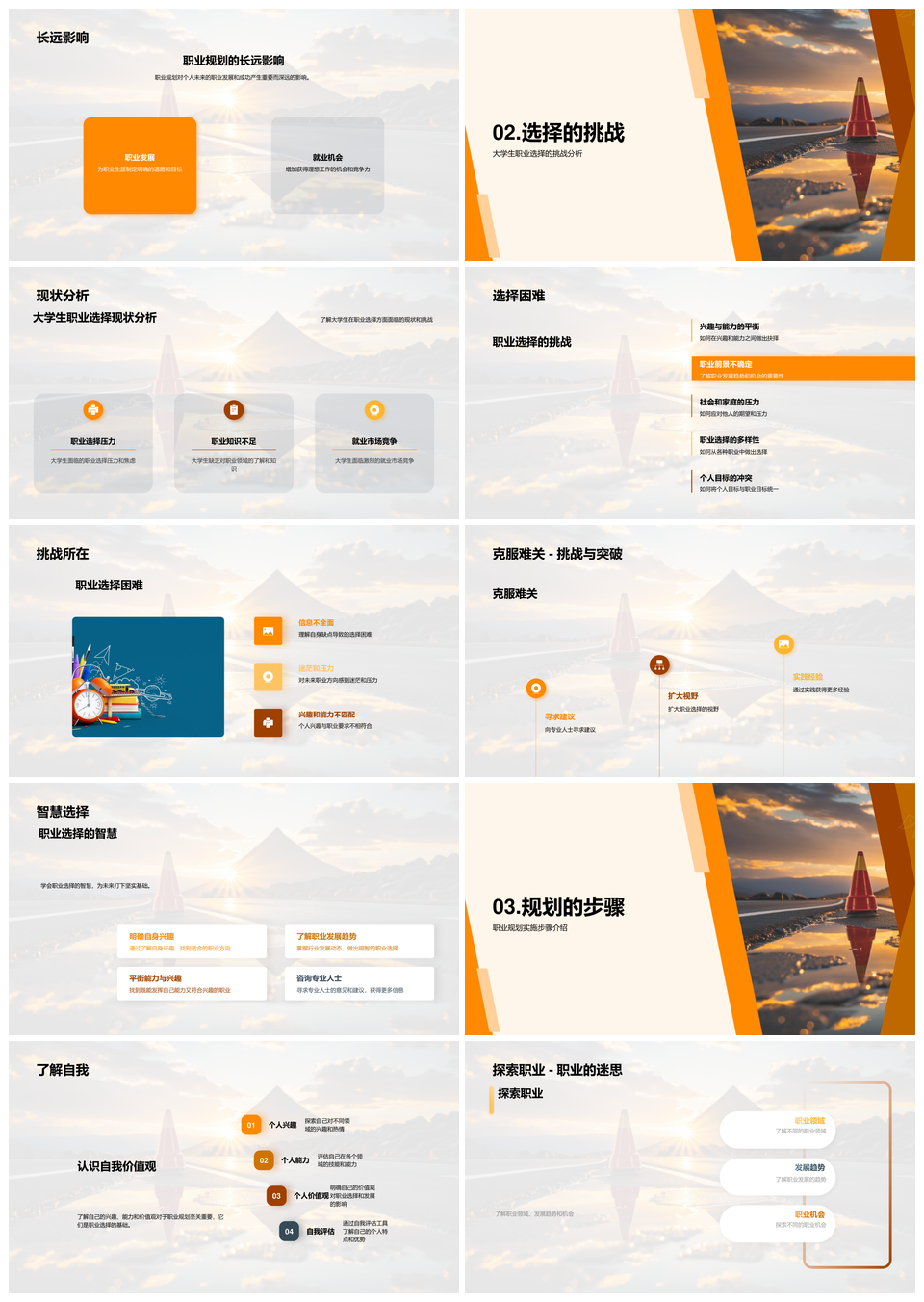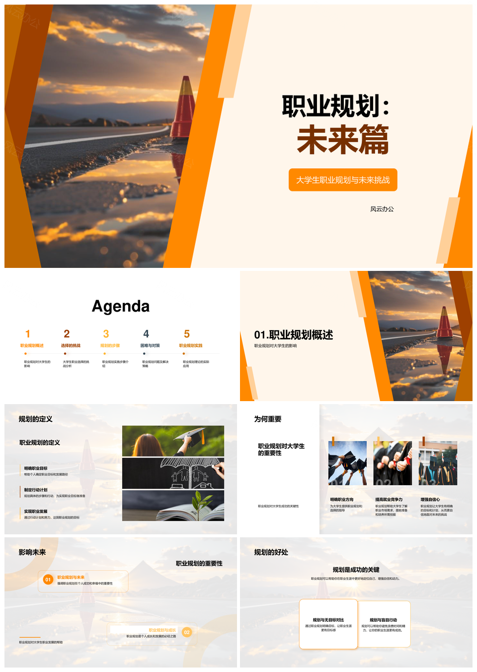 风云办公提供的大学生职业规划未来挑战兴趣能力探索PPT模板,下载格式为pptx,一共33页,作品中文字及图均可以修改和编辑,图片更改请在作品中右键图片并更换,文字修改请直接点击文字进行修改。
