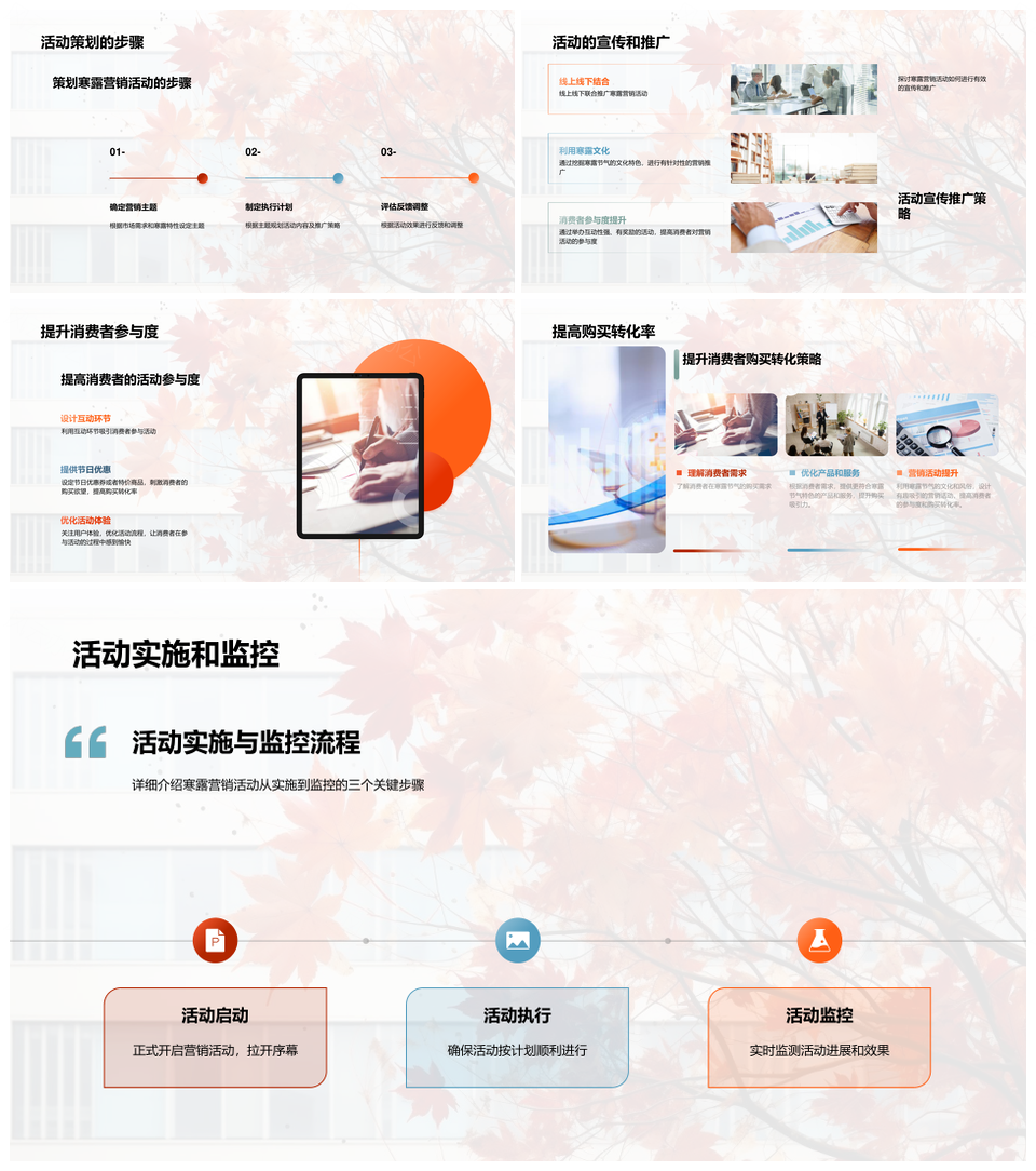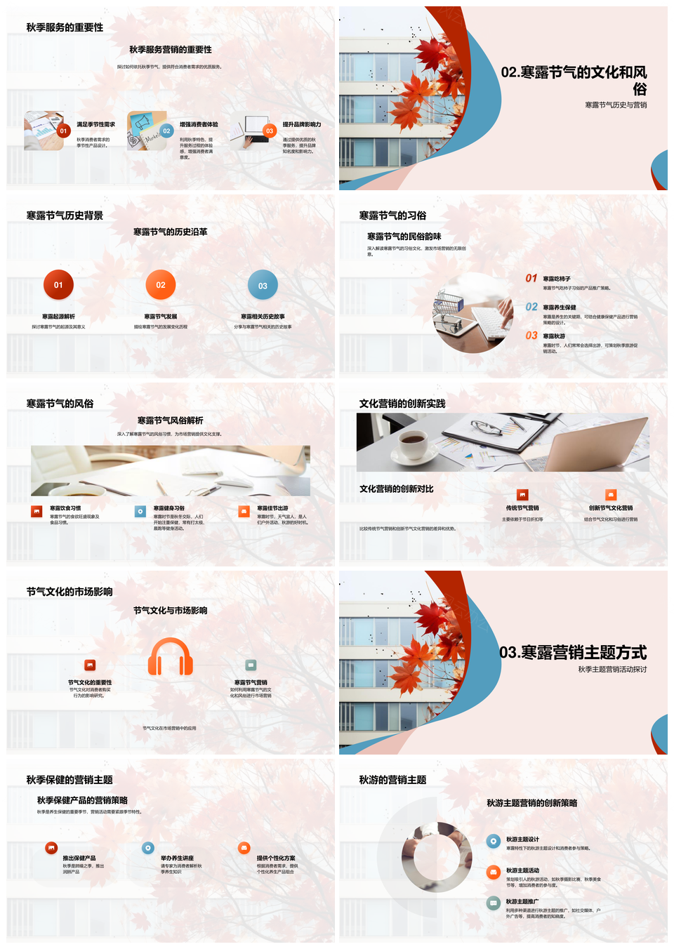 风云办公提供的寒露节气秋季保健秋游营销策略趋势PPT模板,下载格式为pptx,一共33页,作品中文字及图均可以修改和编辑,图片更改请在作品中右键图片并更换,文字修改请直接点击文字进行修改。