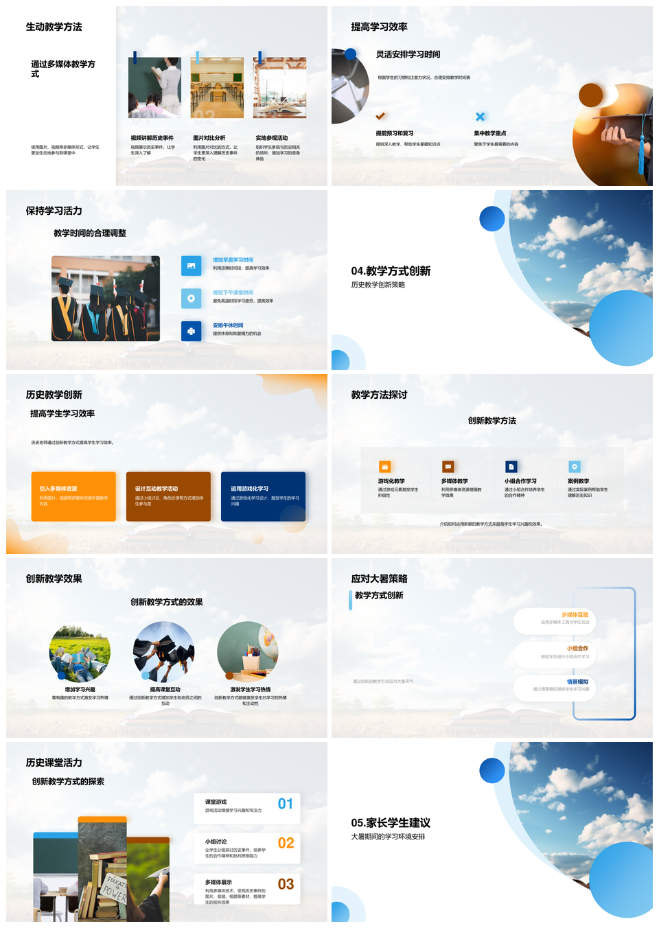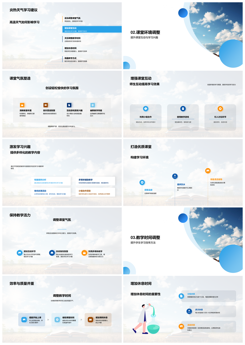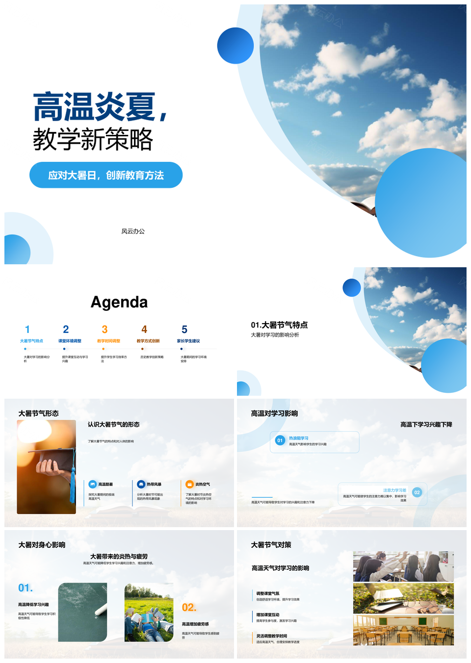 这是一张大暑高温创新教学策略调整PPT模板,包含大暑、高温、创新、教学策略、调整等主题内容,也可用作大暑高温创新教学、高温创新教学策略、创新教学策略调整、大暑高温创新、高温创新教学、创新教学策略、教学策略调整、大暑高温、高温创新、创新教学、教学策略、策略调整等PPT场景使用。 风云办公提供的大暑高温创新教学策略调整PPT模板,下载格式为pptx,一共33页,作品中文字及图均可以修改和编辑,图片更改请在作品中右键图片并更换,文字修改请直接点击文字进行修改。