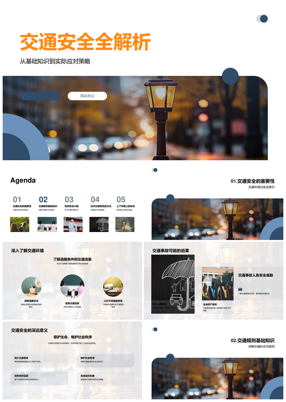 这是一张交通安全规则标志信号教育技巧事故解析PPT模板,包含交通安全、规则、标志、信号、教育、技巧、事故、解析等主题内容,也可用作交通安全规则标志信号、交通安全规则标志教育、交通安全规则信号教育、交通规则标志信号教育、安全规则标志信号教育、交通安全规则教育技巧、交通安全标志信号教育、交通标志信号教育技巧、标志信号教育技巧事故、信号教育技巧事故解析、交通安全教育技巧事故、交通标志信号解析事故、安全规则标志信号解析、交通规则标志信号解析、交通教育技巧事故解析等PPT场景使用。 风云办公提供的交通安全规则标志信号教育技巧事故解析PPT模板,下载格式为pptx,一共23页,作品中文字及图均可以修改和编辑,图片更改请在作品中右键图片并更换,文字修改请直接点击文字进行修改。
