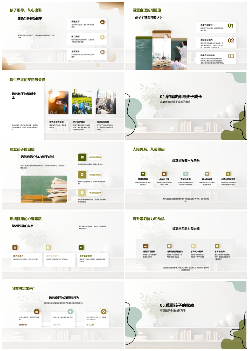 家庭教育情绪引导家长榜样激励习惯社交培养尊重个性阅读PPT模板