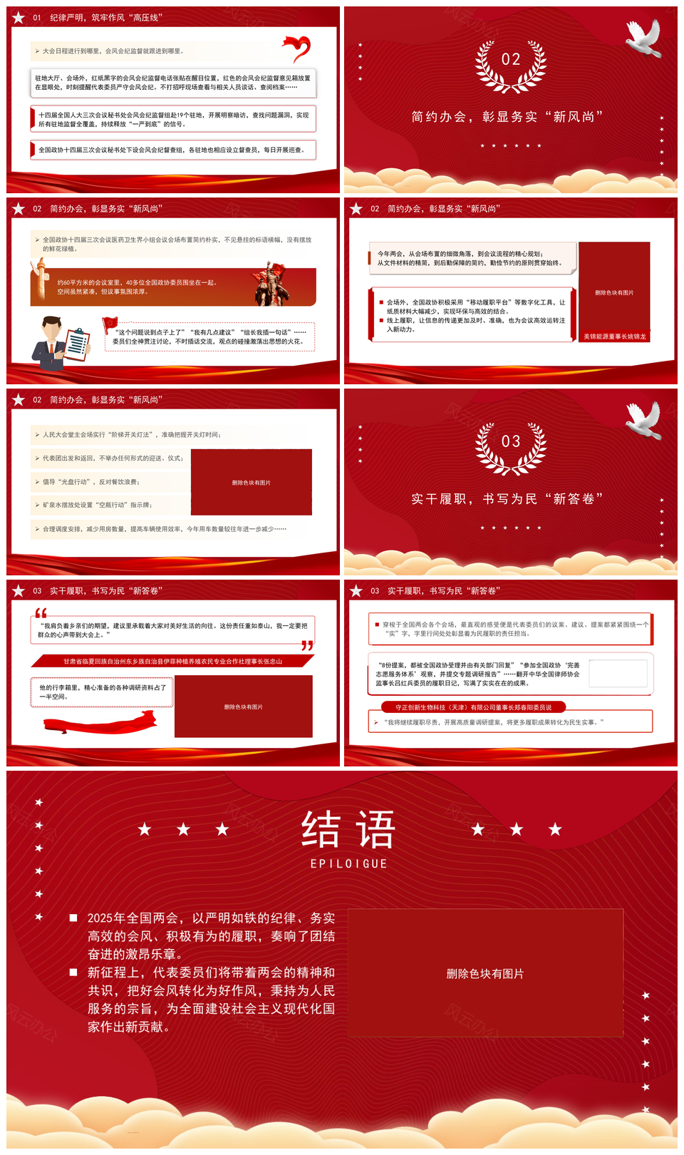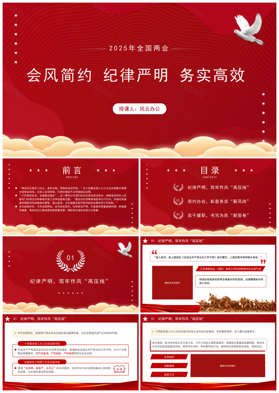 这是一张2025全国两会政府工作报告精神79信号简约严明务实PPT模板,包含2025、全国两会、政府工作报告、精神、79信号、简约、严明、务实等主题内容,也可用作2025全国两会政府工作报告、全国两会政府工作报告精神、政府工作报告精神79信号、简约严明务实、全国两会政府工作报告、两会政府工作报告精神、政府工作报告79信号、全国两会、政府工作报告、79信号、信号简约、简约严明、严明务实、两会精神、精神信号等PPT场景使用。 风云办公提供的2025全国两会政府工作报告精神79信号简约严明务实PPT模板,下载格式为pptx,一共17页,作品中文字及图均可以修改和编辑,图片更改请在作品中右键图片并更换,文字修改请直接点击文字进行修改。