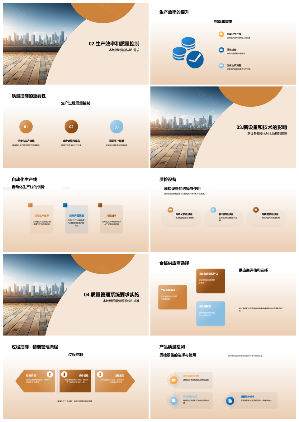 风云办公提供的木地板生产增效质控与制程优化PPT模板,下载格式为pptx,一共24页,作品中文字及图均可以修改和编辑,图片更改请在作品中右键图片并更换,文字修改请直接点击文字进行修改。