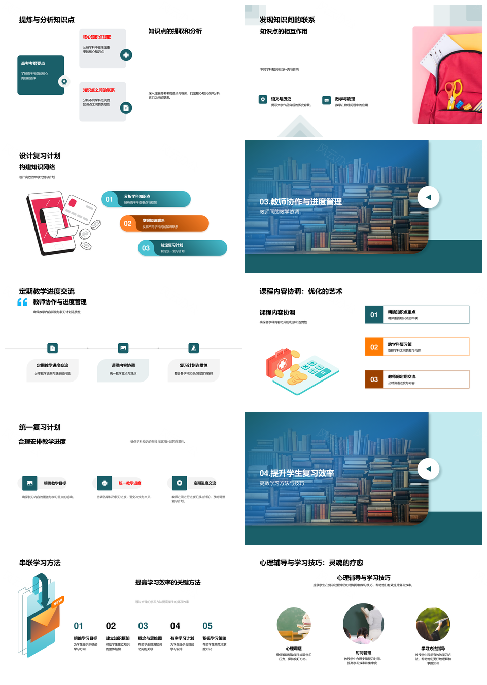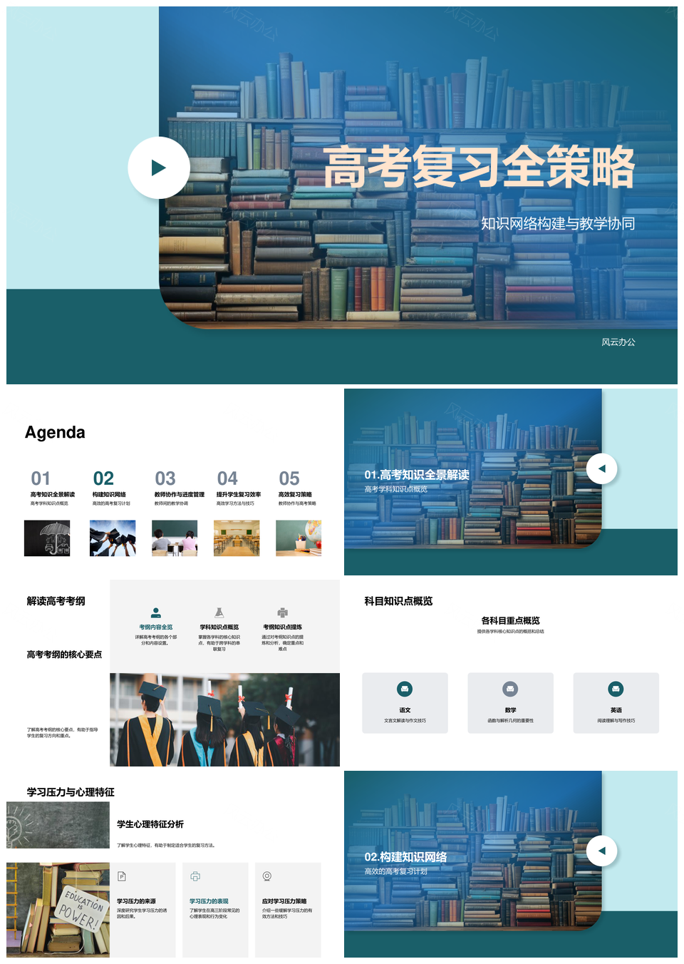 风云办公提供的高考复习策略知识网络构建与教学协同PPT模板,下载格式为pptx,一共23页,作品中文字及图均可以修改和编辑,图片更改请在作品中右键图片并更换,文字修改请直接点击文字进行修改。