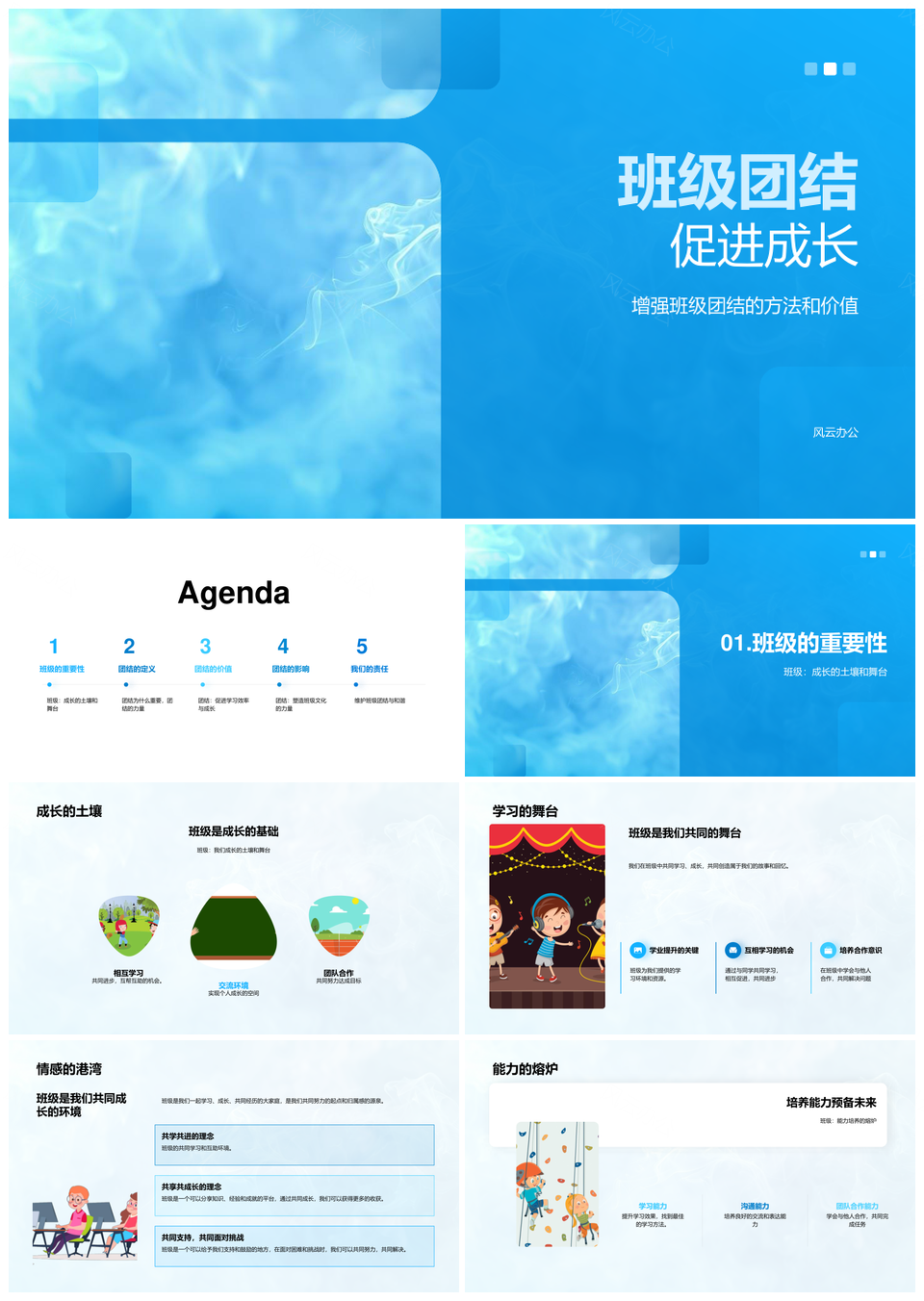 风云办公提供的班级团结聚力成长教育班会活动PPT模板,下载格式为pptx,一共33页,作品中文字及图均可以修改和编辑,图片更改请在作品中右键图片并更换,文字修改请直接点击文字进行修改。