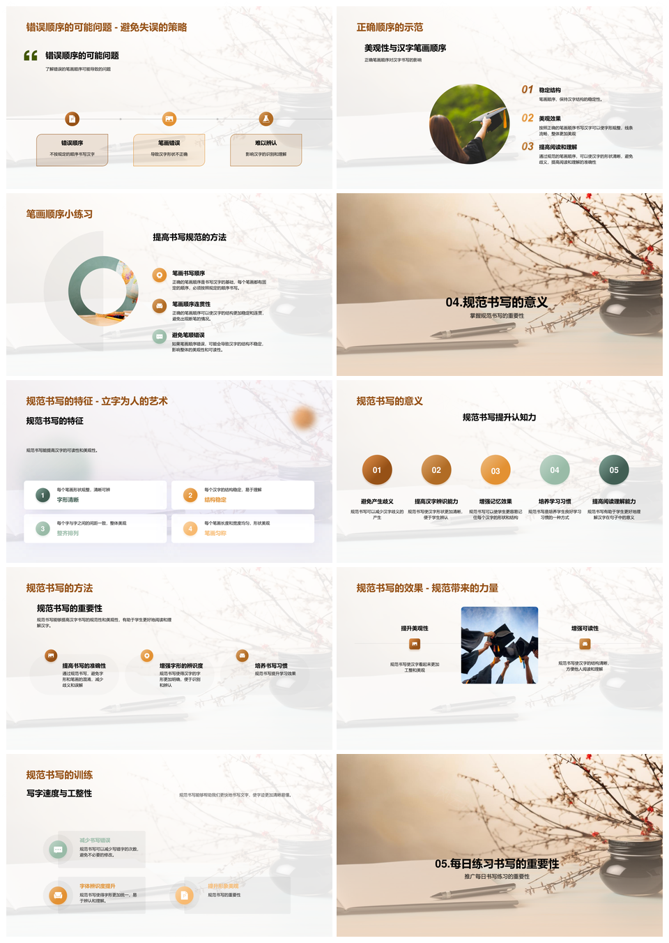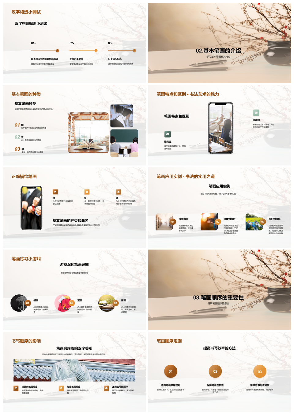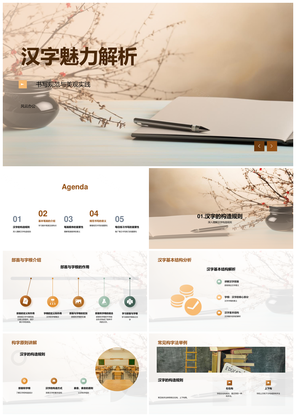 风云办公提供的汉字魅力规范书写笔画顺序与美观实践PPT模板,下载格式为pptx,一共33页,作品中文字及图均可以修改和编辑,图片更改请在作品中右键图片并更换,文字修改请直接点击文字进行修改。