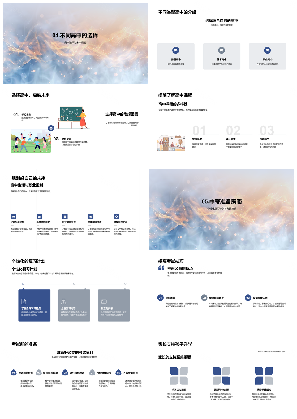 中考升学高中选择学习复习方法时间管理家长指导教育目标考试技巧PPT模板推荐