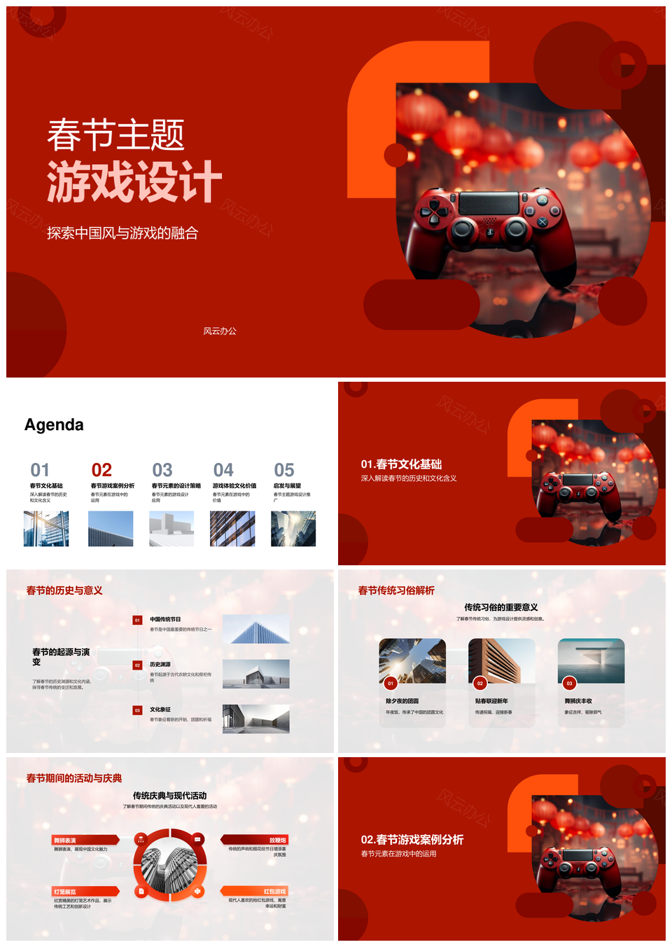 中国风春节游戏融合传统习俗国际化设计PPT模板