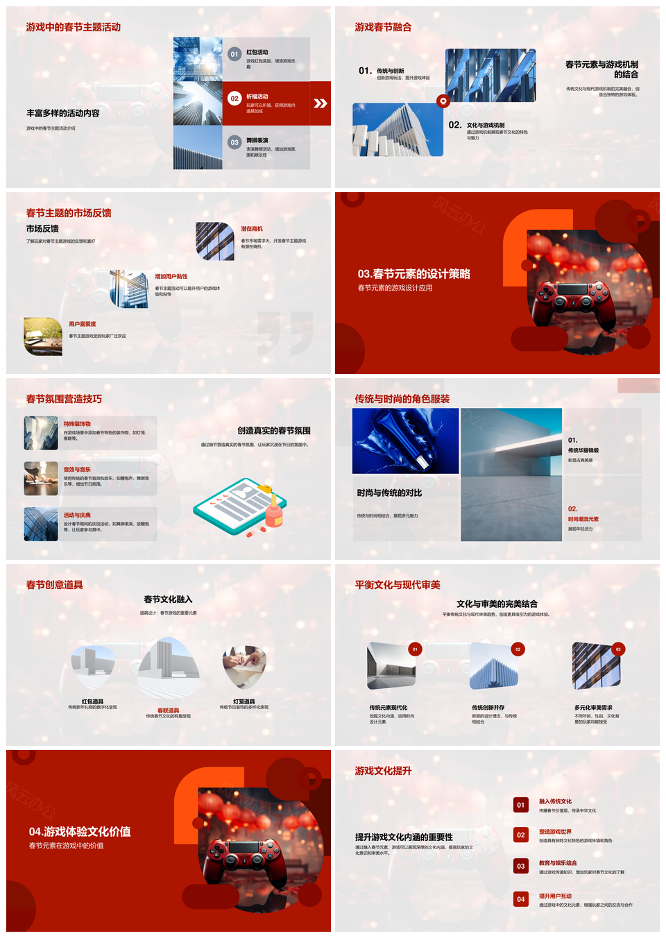 这是一张中国风春节游戏融合传统习俗国际化设计PPT模板,包含中国风、春节游戏、传统习俗、国际化设计等主题内容,也可用作中国风春节游戏融合、春节游戏融合传统习俗、游戏融合传统习俗国际化、融合传统习俗国际化设计、中国风春节游戏、春节游戏融合、游戏融合传统习俗、融合传统习俗国际化、传统习俗国际化设计、中国风春节、春节游戏、游戏融合、融合传统习俗、传统习俗国际化、国际化设计等PPT场景使用。 风云办公提供的中国风春节游戏融合传统习俗国际化设计PPT模板,下载格式为pptx,一共26页,作品中文字及图均可以修改和编辑,图片更改请在作品中右键图片并更换,文字修改请直接点击文字进行修改。