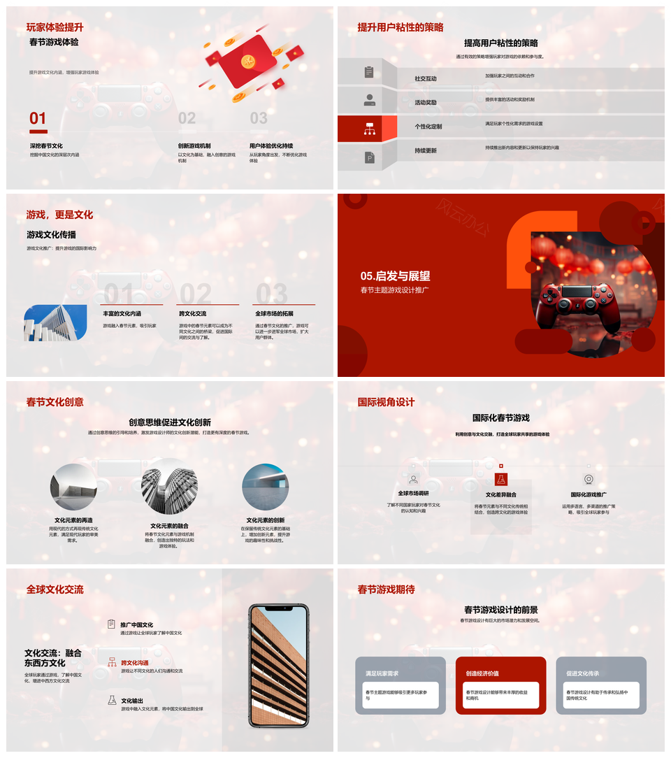 中国风春节游戏融合传统习俗国际化设计PPT模板推荐