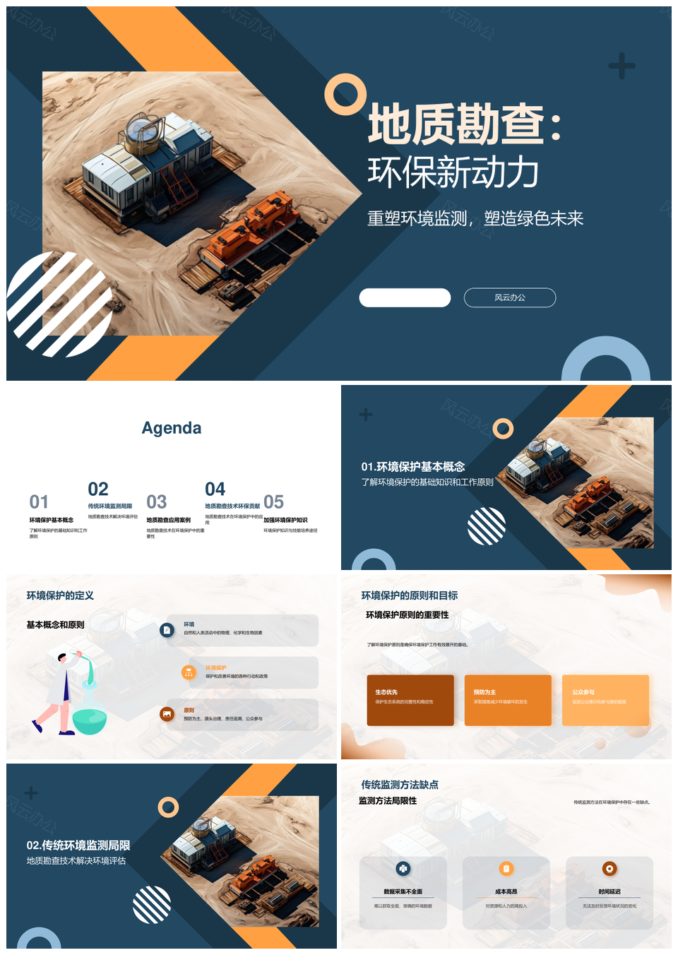 风云办公提供的地质勘查技术助力环保监测新动力PPT模板,下载格式为pptx,一共27页,作品中文字及图均可以修改和编辑,图片更改请在作品中右键图片并更换,文字修改请直接点击文字进行修改。