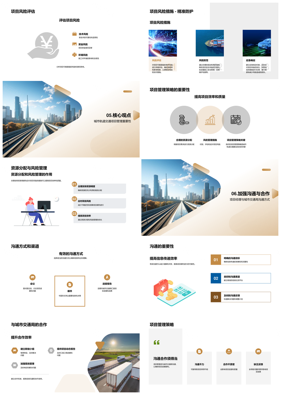 这是一张城市轨道项目成功管理策略合作治堵要诀PPT模板,包含城市轨道、项目、成功、管理、策略、合作、治堵、要诀等主题内容,也可用作城市轨道项目成功管理策略、成功管理策略合作治堵、管理策略合作治堵要诀、城市轨道项目合作治堵、项目成功管理策略合作、成功管理策略治堵要诀、城市轨道项目成功、成功管理策略合作、管理策略合作治堵、合作治堵要诀、城市轨道合作治堵、项目管理策略治堵、成功治堵要诀、城市轨道成功管理策略、城市轨道项目等PPT场景使用。 风云办公提供的城市轨道项目成功管理策略合作治堵要诀PPT模板,下载格式为pptx,一共28页,作品中文字及图均可以修改和编辑,图片更改请在作品中右键图片并更换,文字修改请直接点击文字进行修改。