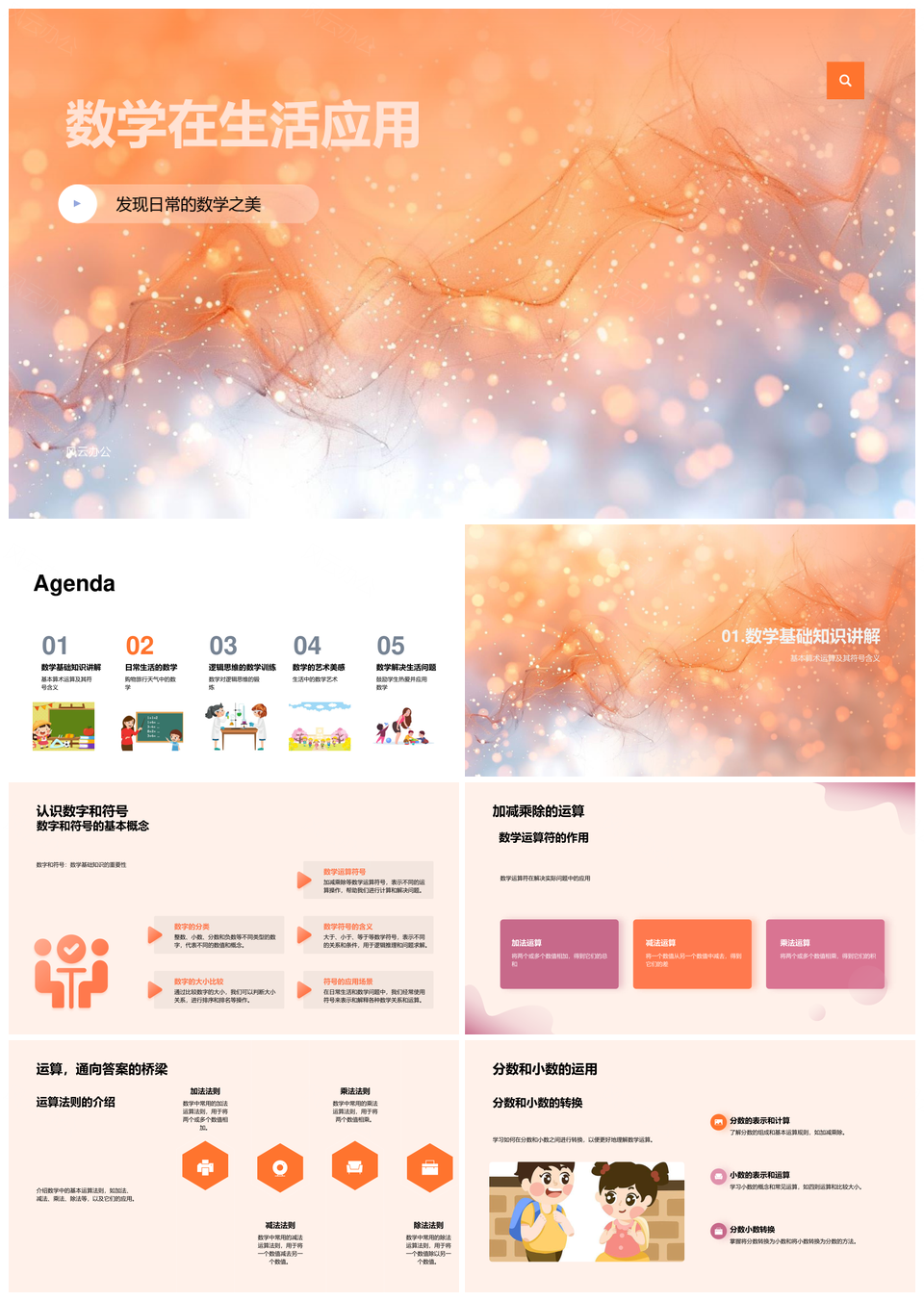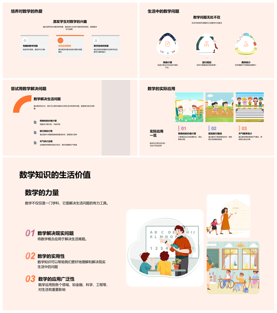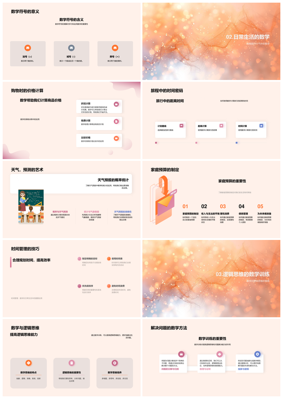 数学应用生活算术逻辑价格距离统计符号预算PPT模板推荐