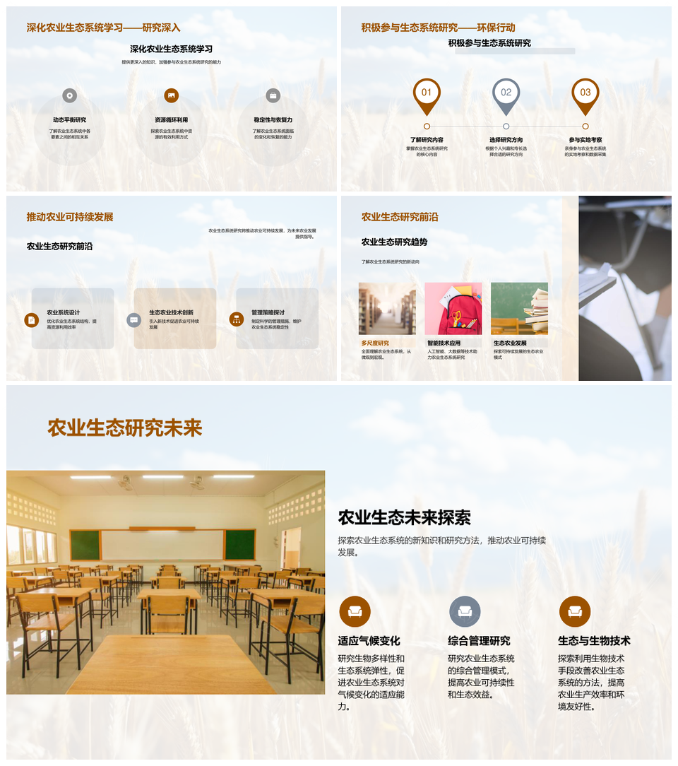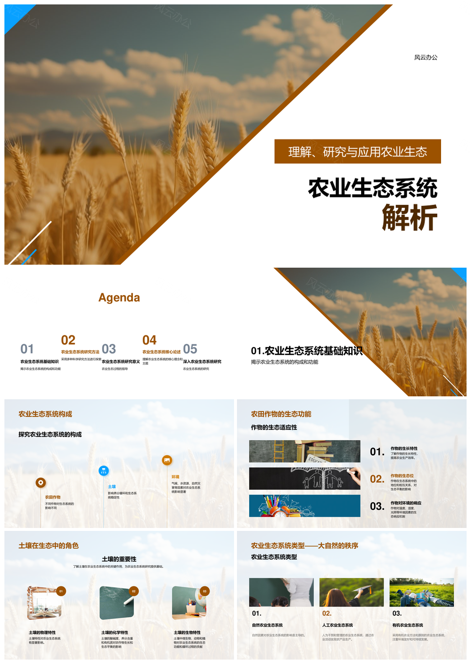 这是一张农业生态系统科技支撑麦田土壤环境可持续发展PPT模板,包含农业生态系统、科技支撑、麦田、土壤环境、可持续发展等主题内容,也可用作农业生态系统科技支撑麦田土壤环境、科技支撑麦田土壤环境可持续发展、农业生态系统科技支撑麦田、科技支撑麦田土壤环境、麦田土壤环境可持续发展、农业生态系统科技支撑、科技支撑麦田、麦田土壤环境、土壤环境可持续发展、农业生态系统可持续发展、科技支撑可持续发展、麦田可持续发展、农业生态系统土壤环境、科技支撑麦田可持续发展、科技支撑土壤环境等PPT场景使用。 风云办公提供的农业生态系统科技支撑麦田土壤环境可持续发展PPT模板,下载格式为pptx,一共33页,作品中文字及图均可以修改和编辑,图片更改请在作品中右键图片并更换,文字修改请直接点击文字进行修改。