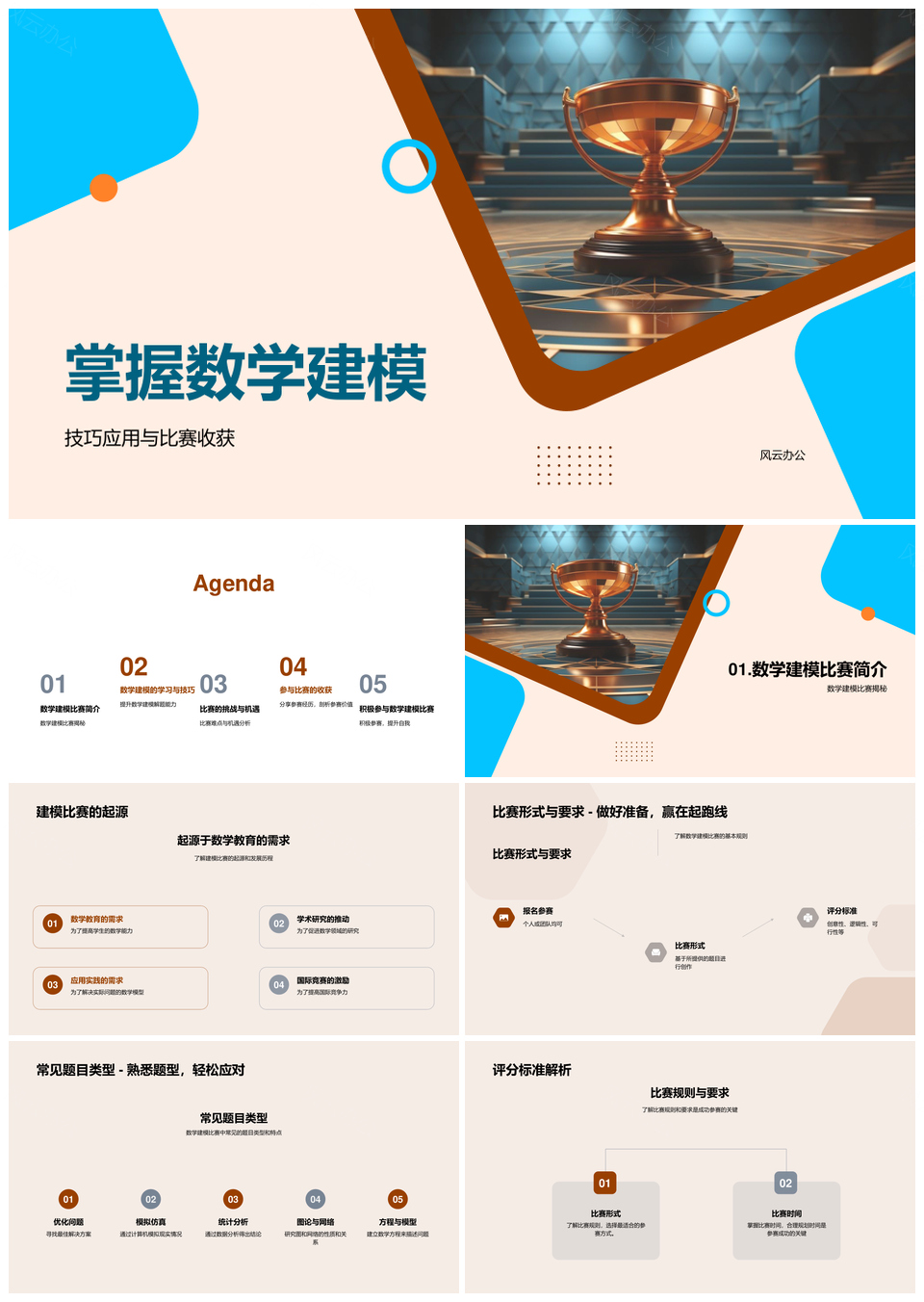 风云办公提供的数学建模比赛技巧规则与能力提升解析PPT模板,下载格式为pptx,一共28页,作品中文字及图均可以修改和编辑,图片更改请在作品中右键图片并更换,文字修改请直接点击文字进行修改。