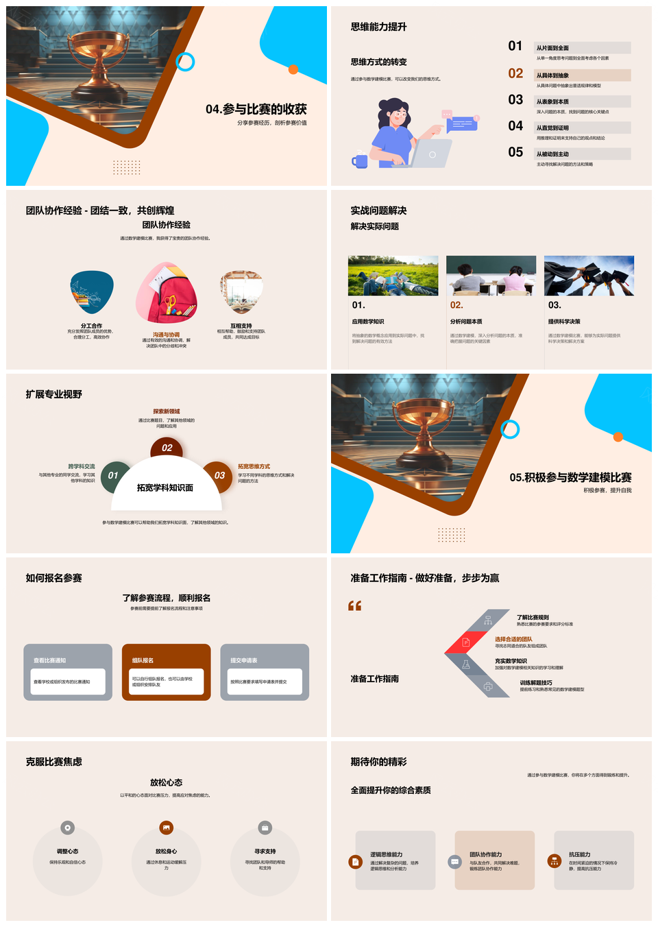 这是一张数学建模比赛技巧规则与能力提升解析PPT模板,包含数学建模、比赛、技巧、规则、能力、提升、解析等主题内容,也可用作数学建模比赛技巧规则与能力提升解析、数学建模比赛技巧规则、数学建模技巧规则能力提升、数学建模比赛能力提升解析、比赛技巧规则能力提升解析、数学建模比赛技巧规则、数学建模技巧规则解析、数学建模比赛技巧、数学建模技巧规则、数学建模能力提升、比赛技巧规则、规则能力提升、数学建模比赛、数学建模技巧、比赛技巧、能力提升等PPT场景使用。