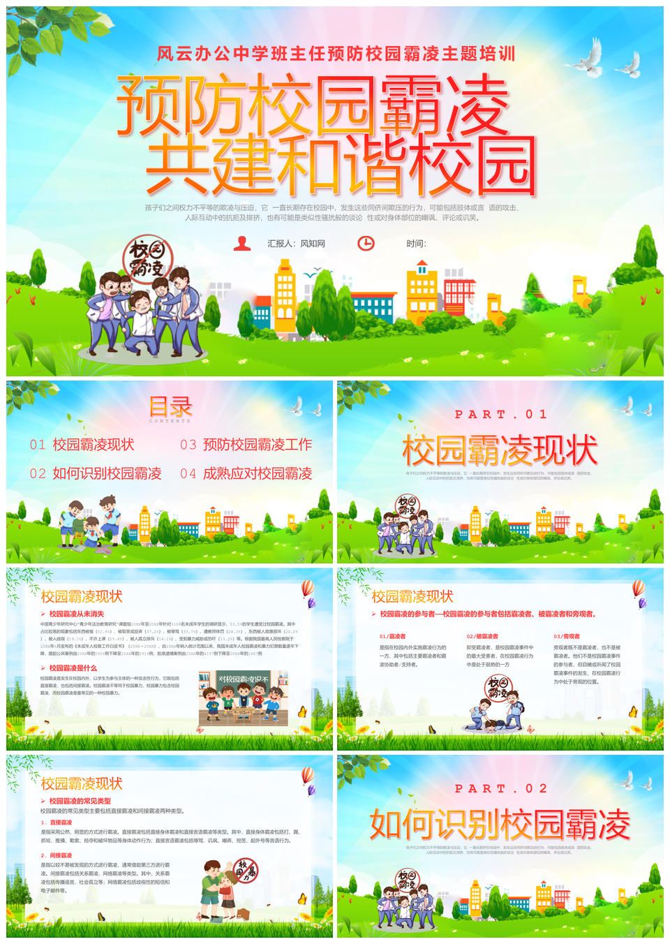 这是一张红色小清新预防校园霸凌和谐校园主题班会PPT模板,包含红色、小清新、预防、校园、霸凌、和谐、班会等主题内容,也可用作红色小清新预防校园、小清新预防校园霸凌、预防校园霸凌和谐、校园霸凌和谐校园、霸凌和谐校园主题、和谐校园主题班会、红色小清新预防、小清新预防校园、预防校园霸凌、校园霸凌和谐、霸凌和谐校园、和谐校园主题、校园主题班会、红色小清新、小清新预防等PPT场景使用。 风云办公提供的红色小清新预防校园霸凌和谐校园主题班会PPT模板,下载格式为pptx,一共15页,作品中文字及图均可以修改和编辑,图片更改请在作品中右键图片并更换,文字修改请直接点击文字进行修改。