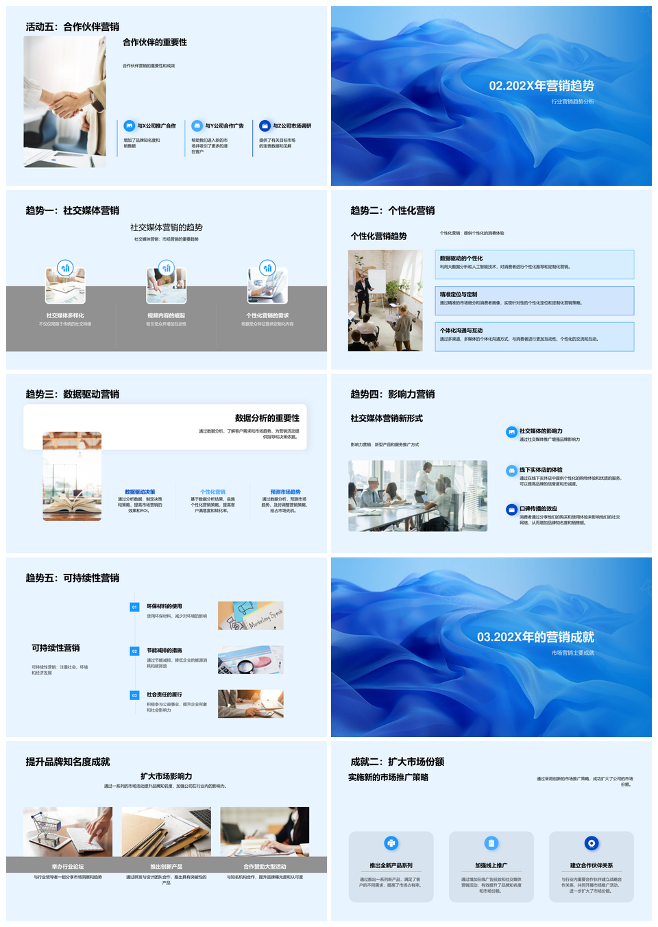 这是一张2025市场营销经理年报新年规划活动趋势成就策划目标PPT模板,包含2025、市场营销经理、年报、新年、规划、活动、趋势、成就、策划、目标等主题内容,也可用作2025市场营销经理年报新年规划活动趋势、市场营销经理年报新年规划活动趋势成就、年报新年规划活动趋势成就策划目标、新年规划活动趋势成就策划目标、2025市场营销经理年报新年规划、市场营销经理年报新年规划活动趋势、年报新年规划活动趋势成就、新年规划活动趋势成就策划目标、2025市场营销经理年报、市场营销经理年报新年规划、年报新年规划活动趋势、新年规划活动趋势成就、活动趋势成就策划目标、2025市场营销经理、市场营销经理年报、年报新年规划等PPT场景使用。 风云办公提供的2025市场营销经理年报新年规划活动趋势成就策划目标PPT模板,下载格式为pptx,一共33页,作品中文字及图均可以修改和编辑,图片更改请在作品中右键图片并更换,文字修改请直接点击文字进行修改。