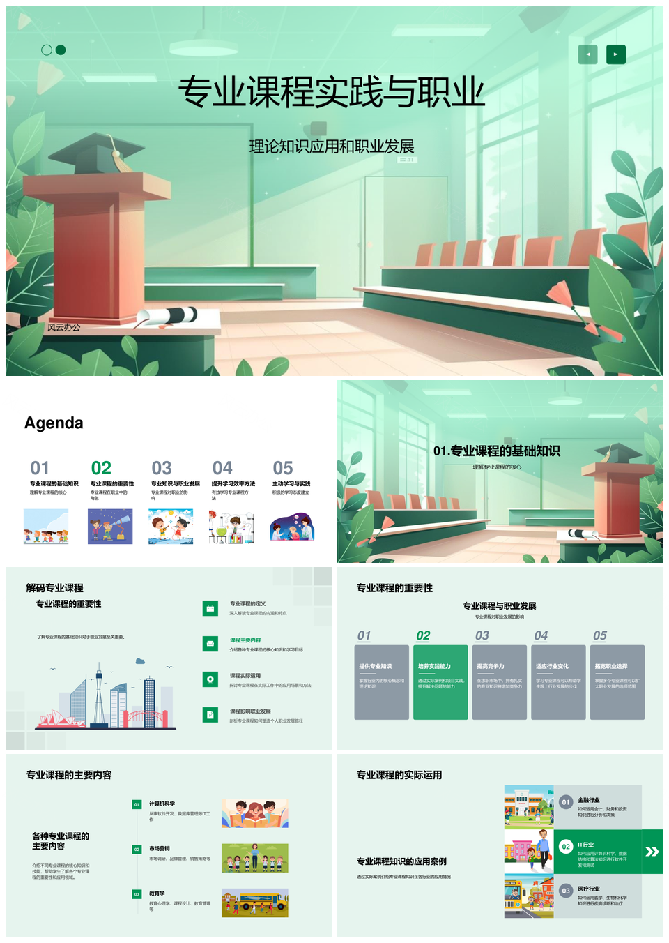 风云办公提供的专业课程实践驱动职业发展应用PPT模板,下载格式为pptx,一共24页,作品中文字及图均可以修改和编辑,图片更改请在作品中右键图片并更换,文字修改请直接点击文字进行修改。