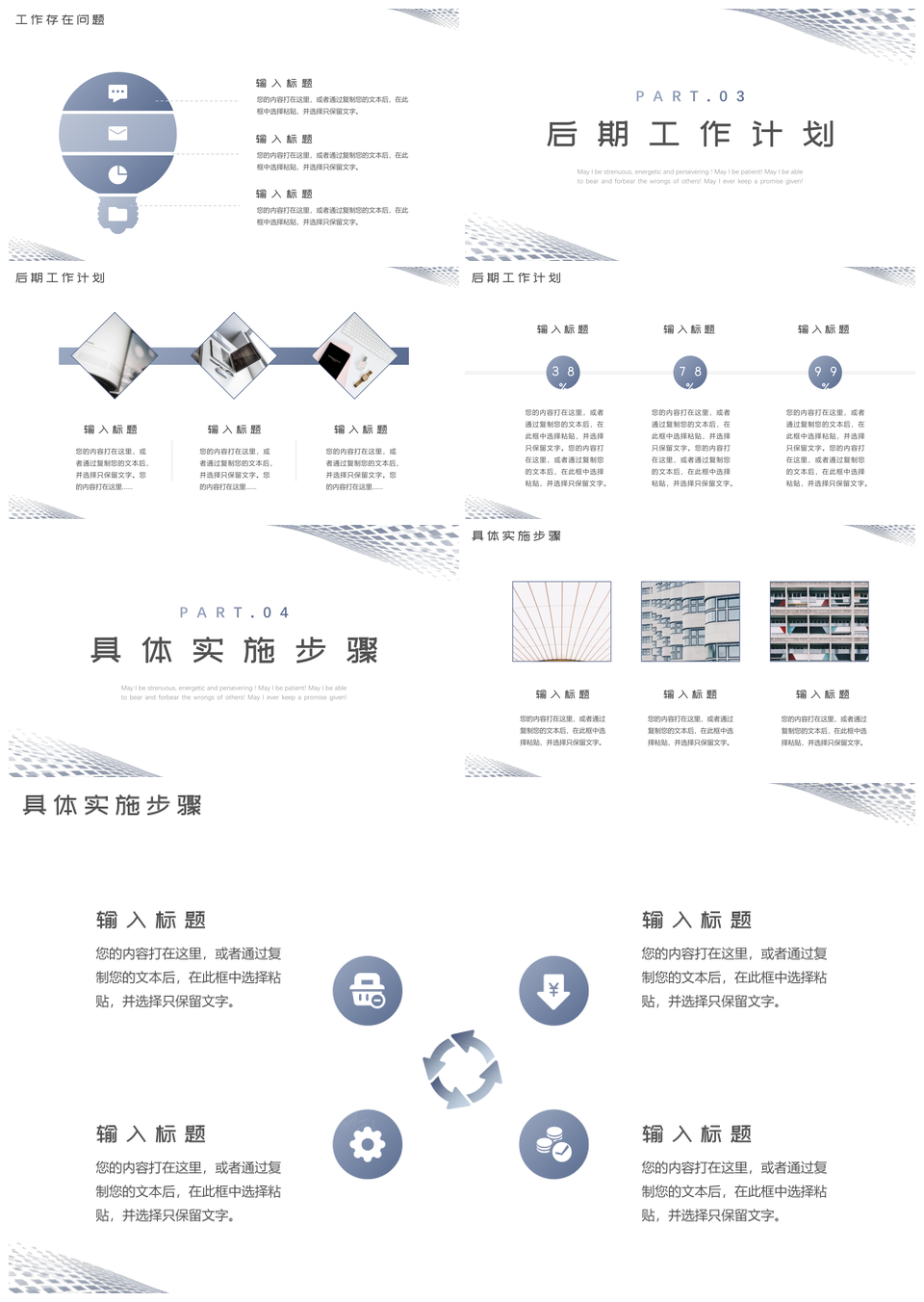 这是一张工作计划白色年中工作总结汇报PPT模板,包含工作计划、白色、年中、工作总结、汇报等主题内容,也可用作工作计划、白色、年中、工作总结、汇报等PPT场景使用。 风云办公提供的工作计划白色年中工作总结汇报PPT模板,下载格式为pptx,一共15页,作品中文字及图均可以修改和编辑,图片更改请在作品中右键图片并更换,文字修改请直接点击文字进行修改。