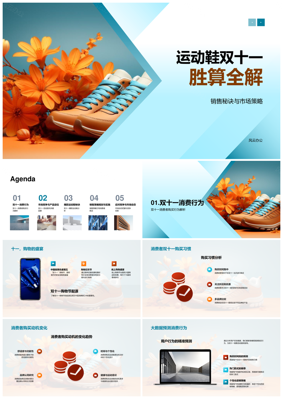 风云办公提供的双十一运动鞋市场策略大数据制胜秘诀PPT模板,下载格式为pptx,一共28页,作品中文字及图均可以修改和编辑,图片更改请在作品中右键图片并更换,文字修改请直接点击文字进行修改。
