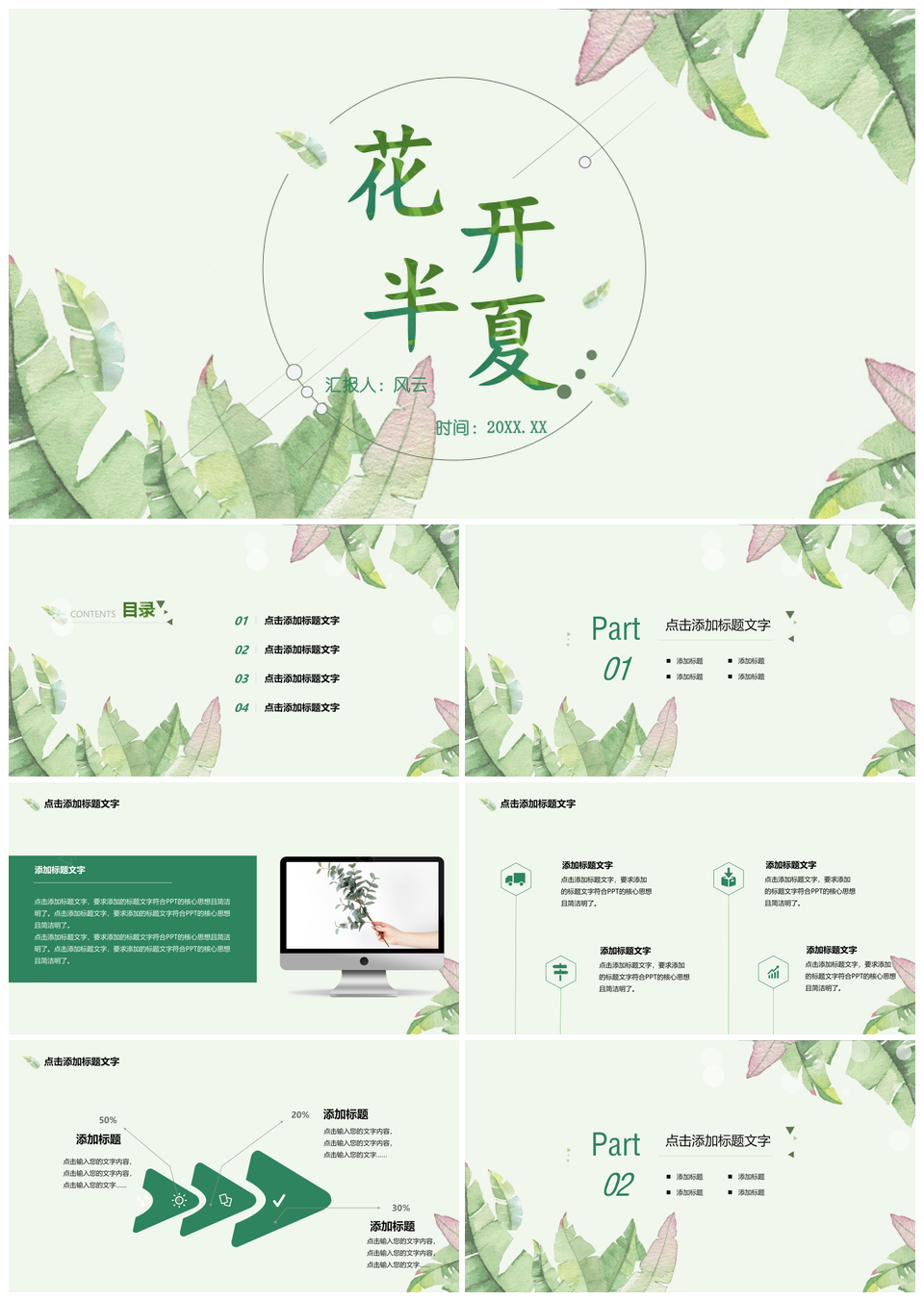 绿色简约小清新教育教学商务风培训总结汇报PPT模板