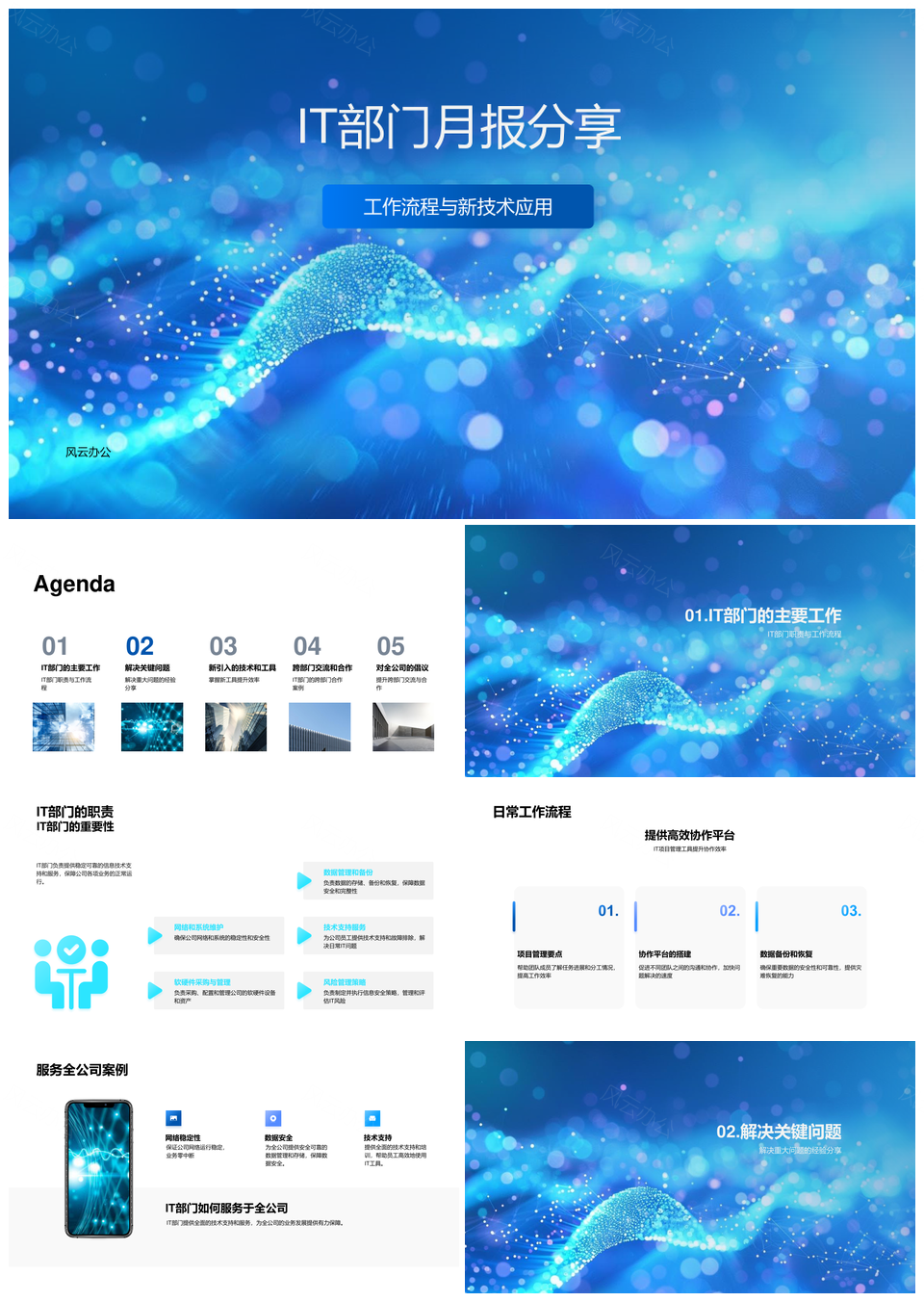 IT月报技术应用问题解决跨部门数据工具流程PPT模板推荐