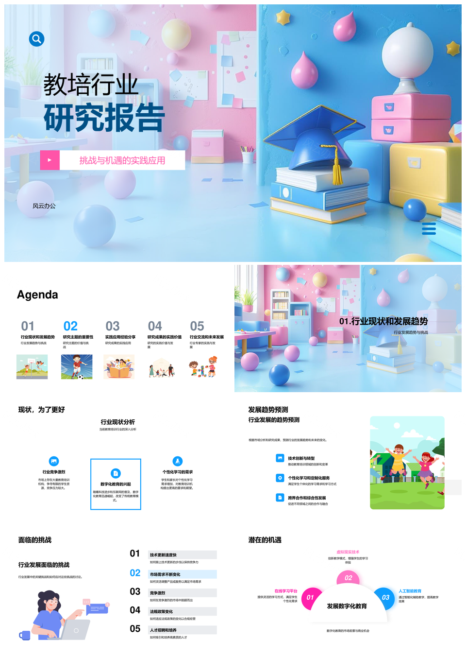 风云办公提供的教培行业趋势现状数字化教育研究实践PPT模板,下载格式为pptx,一共26页,作品中文字及图均可以修改和编辑,图片更改请在作品中右键图片并更换,文字修改请直接点击文字进行修改。