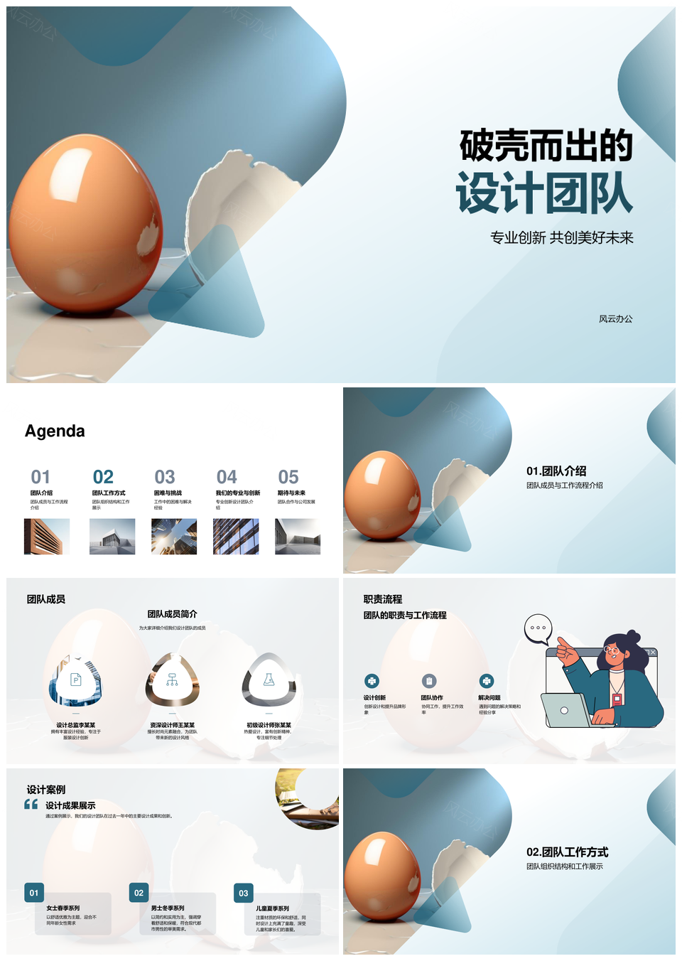 风云办公提供的破壳设计团队专业创新高效全流程PPT模板,下载格式为pptx,一共23页,作品中文字及图均可以修改和编辑,图片更改请在作品中右键图片并更换,文字修改请直接点击文字进行修改。