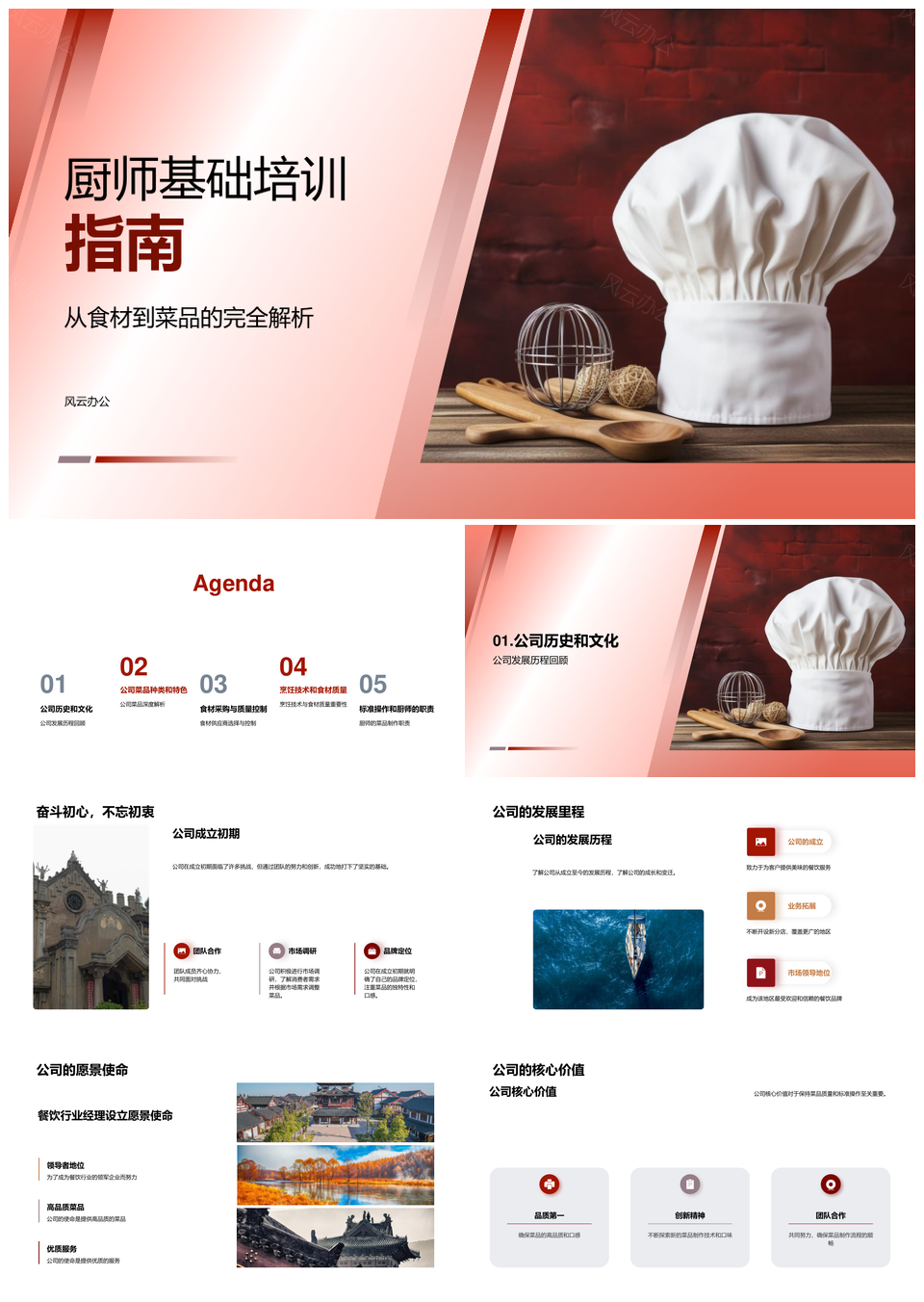厨师基础培训食材菜品企业文化技术核心PPT模板推荐