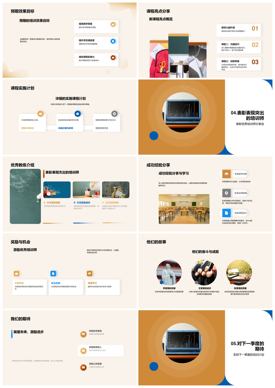 季度培训成效改进协作反馈数据课程个人计划工作表现PPT模板