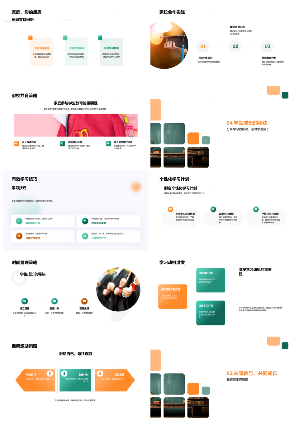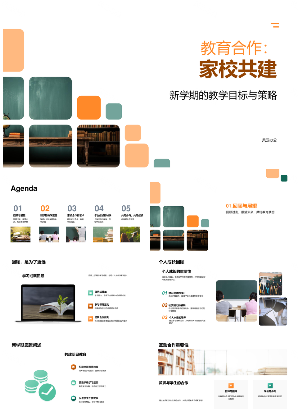 风云办公提供的家校共建教育合作促教学目标成就成长PPT模板,下载格式为pptx,一共33页,作品中文字及图均可以修改和编辑,图片更改请在作品中右键图片并更换,文字修改请直接点击文字进行修改。