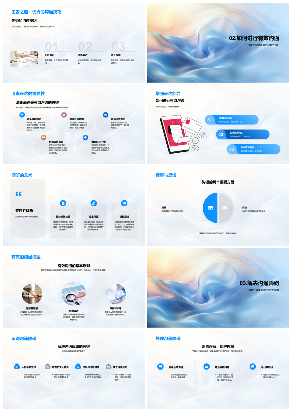 办公沟通技巧团队协作倾听解决障碍提升效率PPT模板推荐