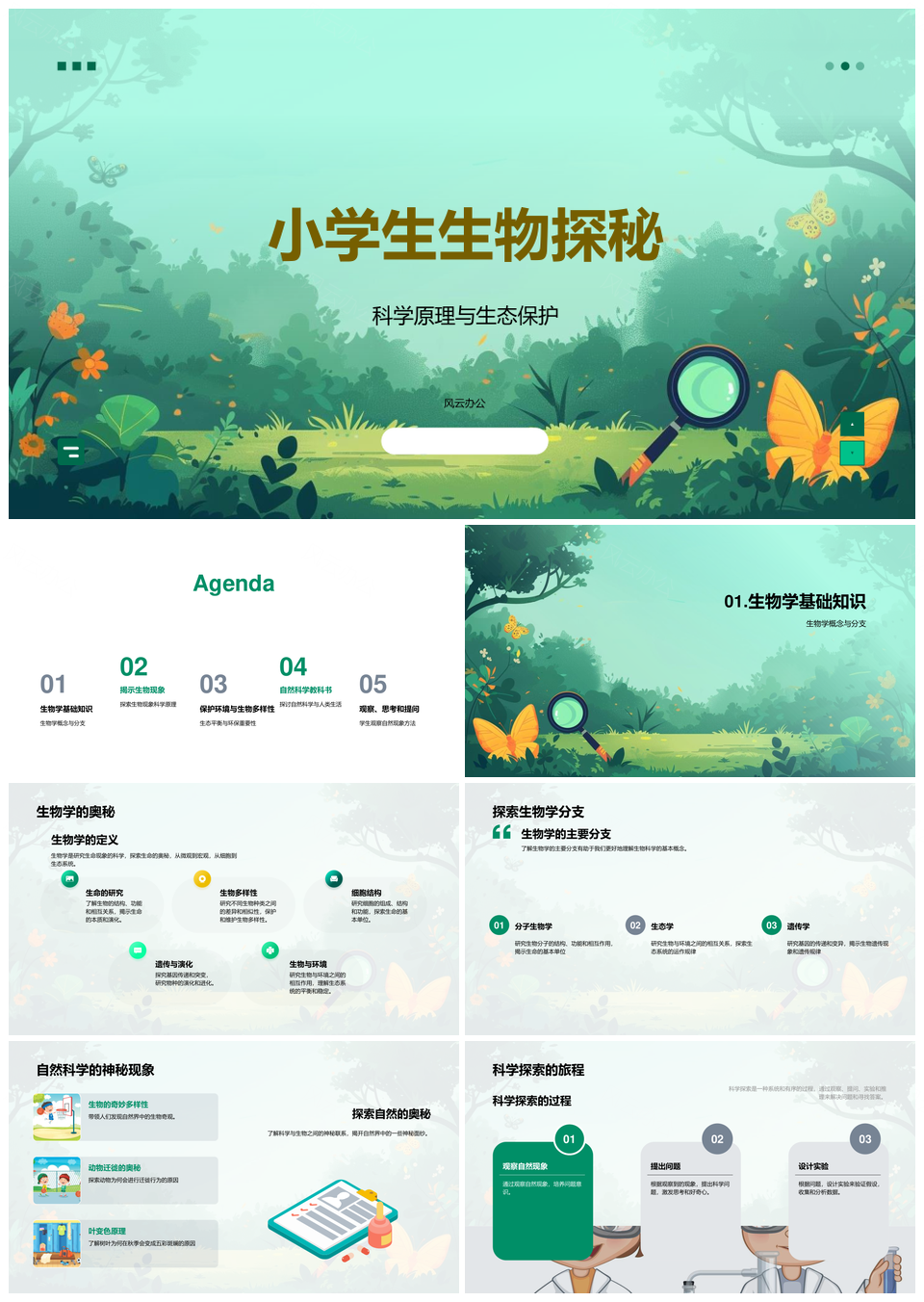 风云办公提供的小学生生物科学环保生态探秘PPT模板,下载格式为pptx,一共33页,作品中文字及图均可以修改和编辑,图片更改请在作品中右键图片并更换,文字修改请直接点击文字进行修改。