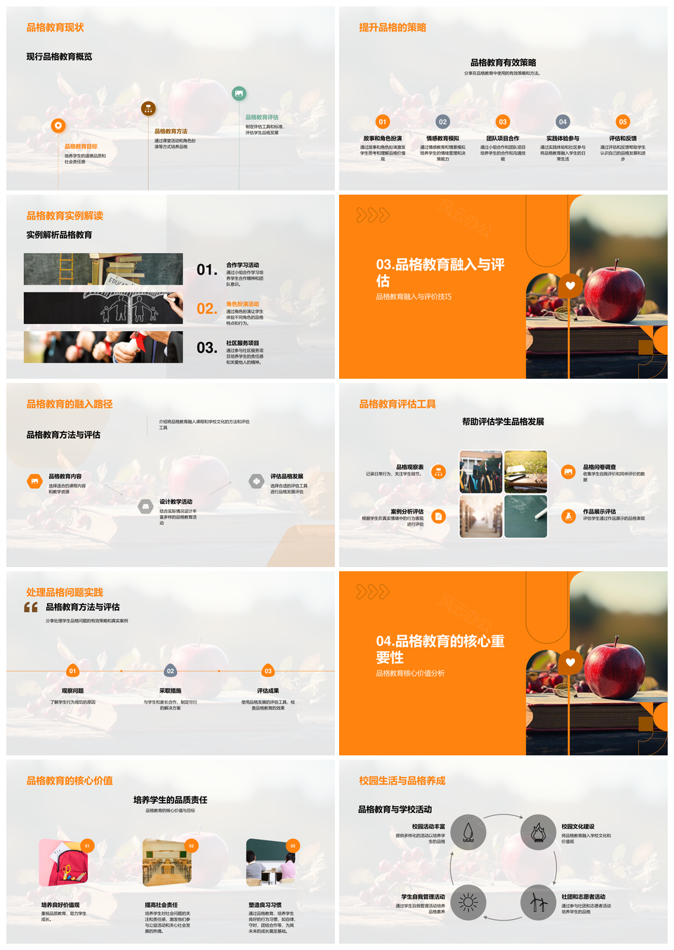 本模板聚焦品格教育的实践探索与科学化提升路径,以理性视角构建教育者专业工具,橙色为主视觉传递创新活力,辅以波粒二象性隐喻理论与实践的双向融合,激光元素强化逻辑穿透力。框架涵盖品格发展分层模型、策略方法工具库及案例数据可视化模块,支持多维教育场景需求。内容结构采用学术级导航设计,分层展示行为规范、认知构建到价值内化的进阶逻辑,支持替换实证研究成果图表,预设矢量图标实现教学情境灵活模拟。适用于教育机构成果汇报、学术研讨或师资培训场景,以结构性思维助力品格教育系统性落地。