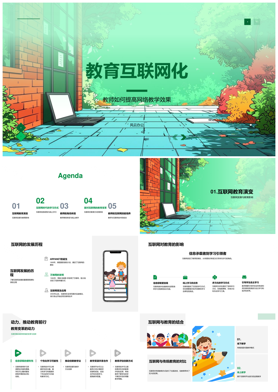2025教育互联网化驱动多元线上教学师教转型PPT模板推荐