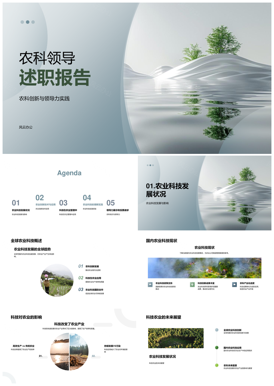 风云办公提供的农科领导述职科技创新发展实践报告PPT模板,下载格式为pptx,一共27页,作品中文字及图均可以修改和编辑,图片更改请在作品中右键图片并更换,文字修改请直接点击文字进行修改。
