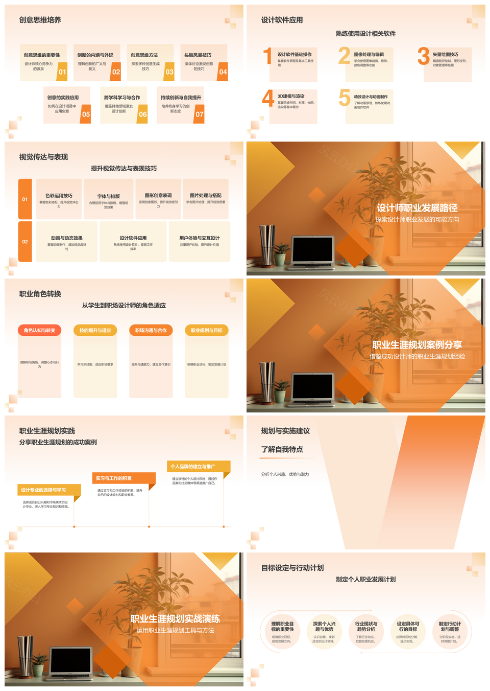 大学生设计师职业规划目标管理技能素养成功基础PPT模板推荐