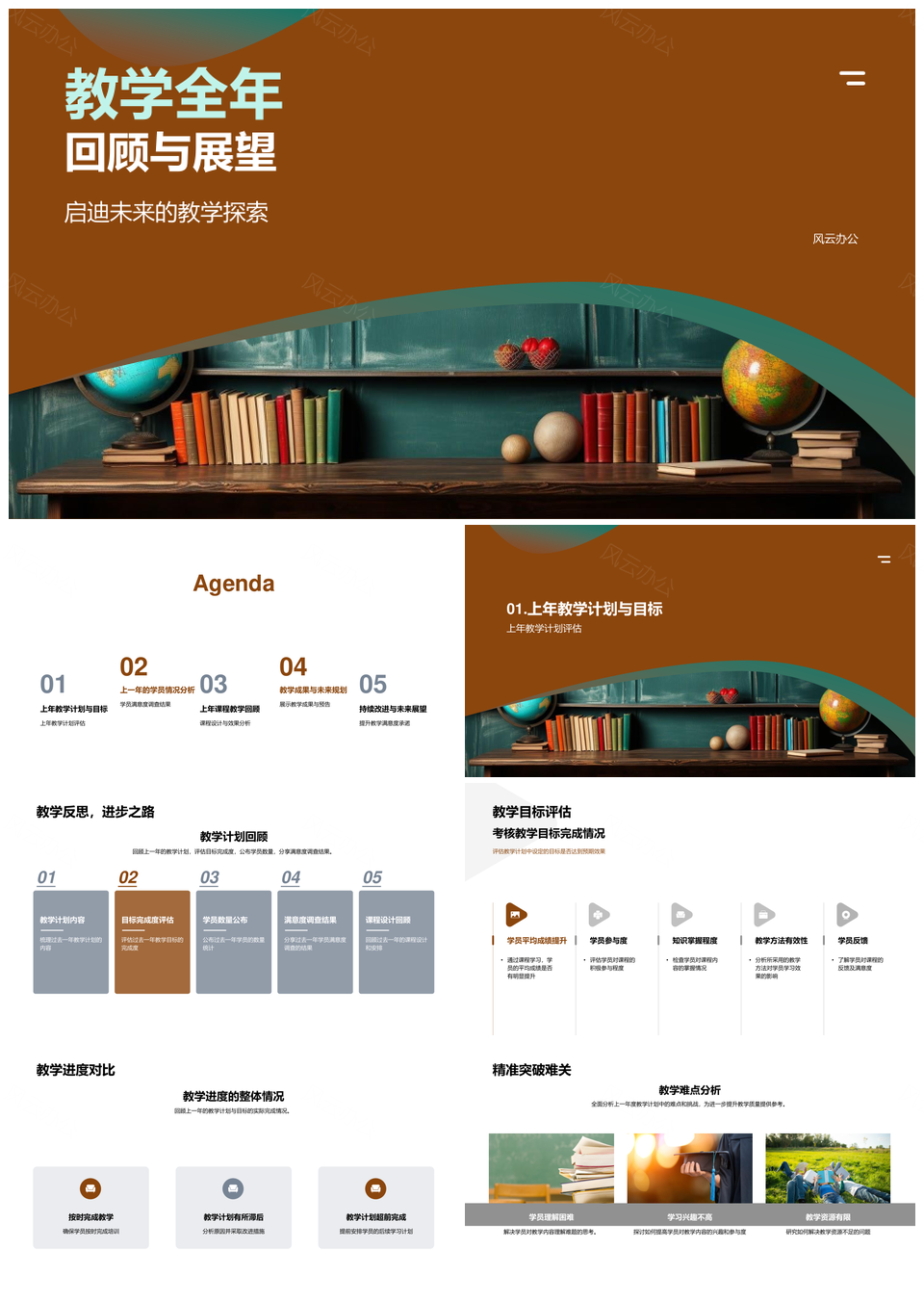 风云办公提供的教学全年探索成果回顾展望计划PPT模板,下载格式为pptx,一共29页,作品中文字及图均可以修改和编辑,图片更改请在作品中右键图片并更换,文字修改请直接点击文字进行修改。